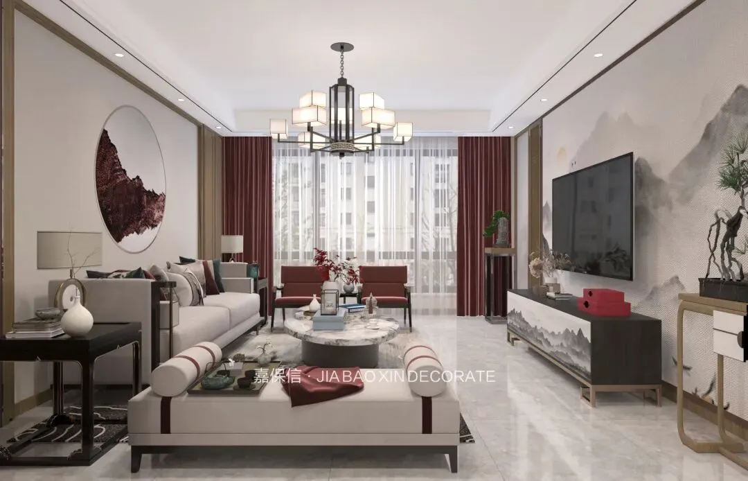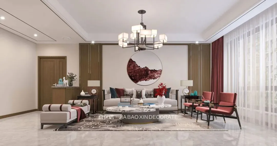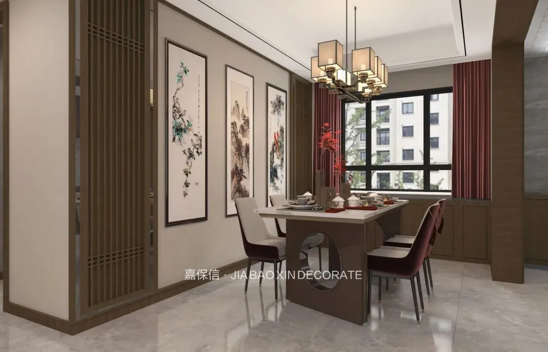 烟台嘉保信装饰打造崇文花园140㎡新中式风格装修效果图