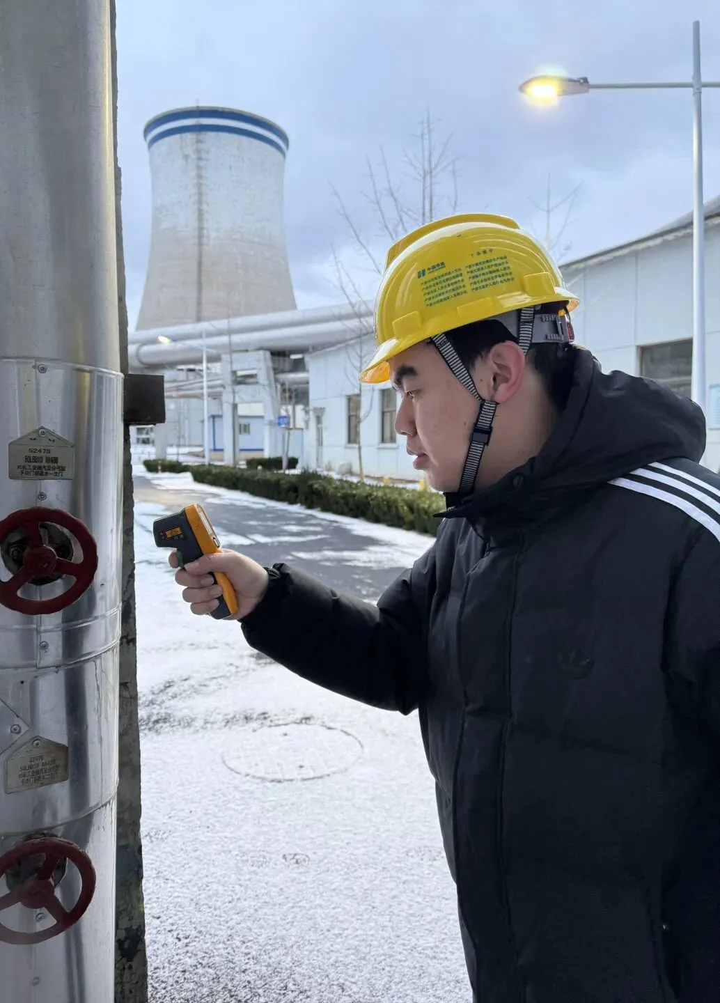 锚定热源供应核心,厂内四台机组火力全开、满负荷稳定运行,确保热源输出充足、稳定、可控。生产系统人员严格执行防寒防冻检查制度,强化现场就地巡检,细致排查每一台设备、每一个节点的运行状态,精准捕捉潜在隐患并快速处置,全力规避严寒天气对设备运行的不利影响。