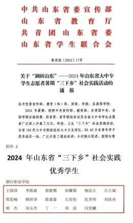 他热心公益、主动担当。积极参与“青鸟计划”获评“优秀实习生”与滨州市“优秀志愿者”;带领团队赴滨州市博兴县开展“情系黄河”三下乡社会实践,围绕黄河生态保护等主题开展调研与宣传,拍摄七百余份影像资料,项目入选“千校千项”优秀项目,事迹被中国青年网等平台报道二十余次,项目入选“千校千项”优秀项目,个人获评2024年山东省“三下乡”优秀学生,用实干为社会发展贡献青年力量。