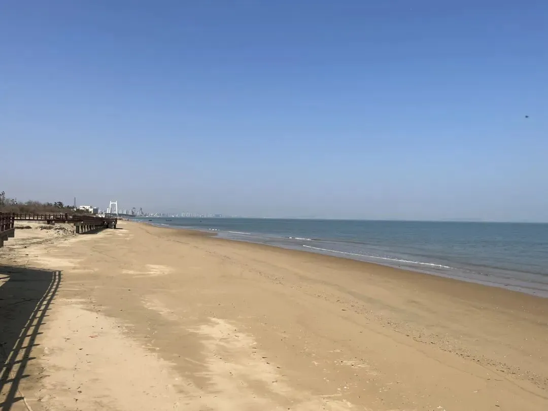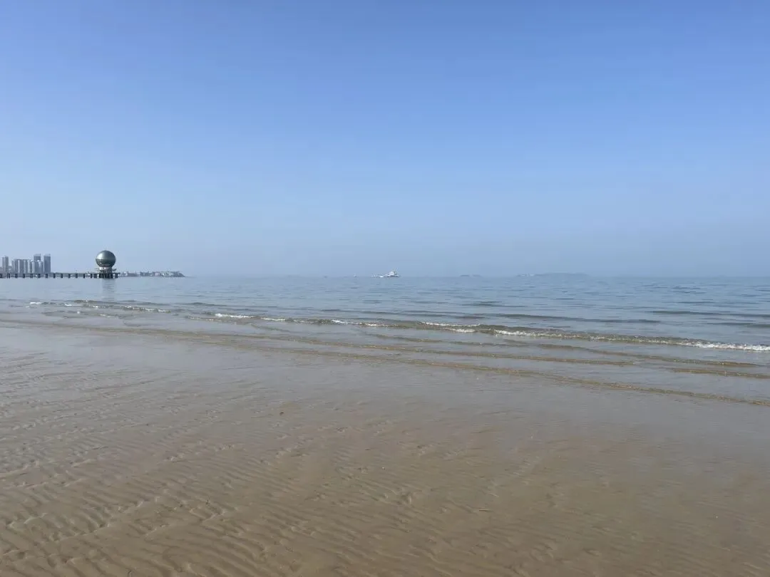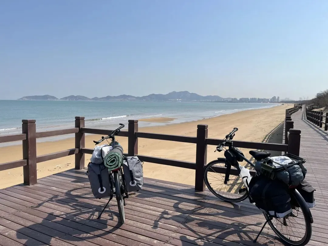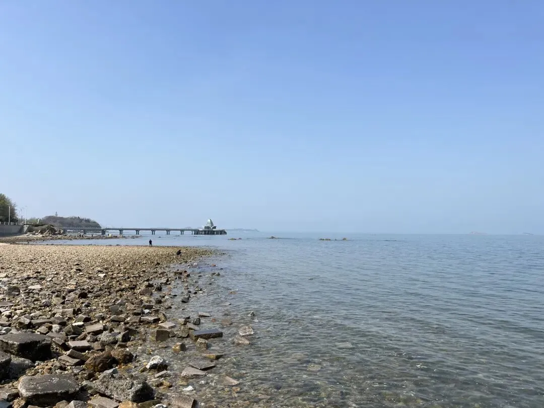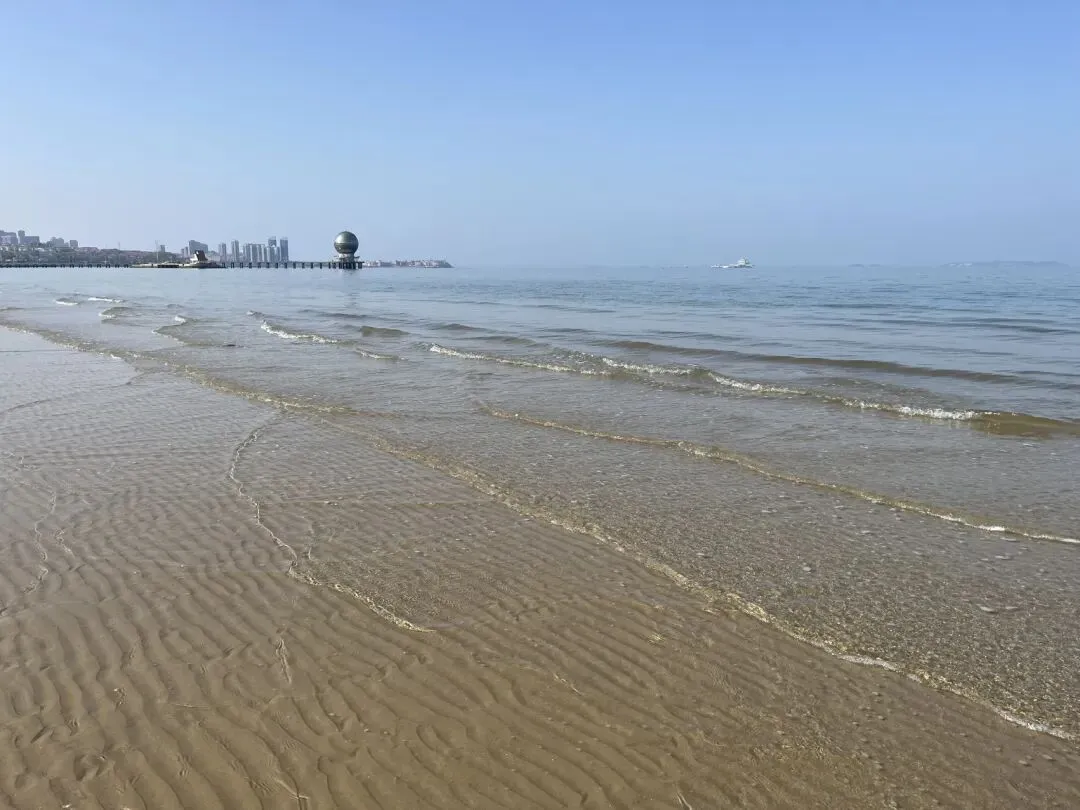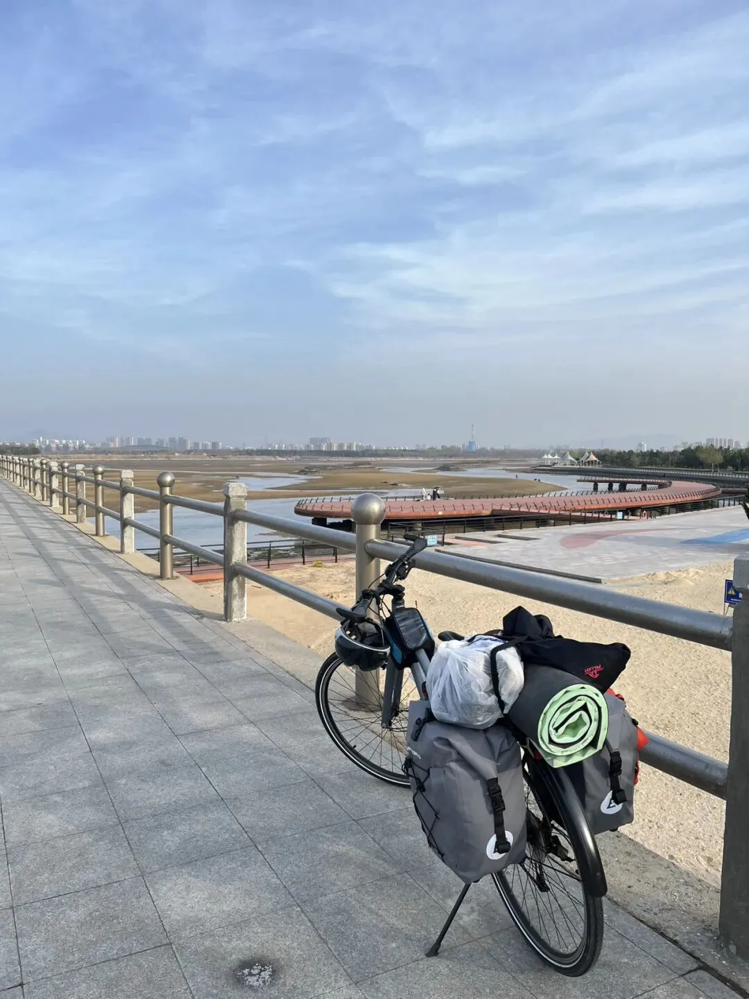 离开烟台山后继续沿海边向东,经过第一海滨浴场、月亮湾、东炮台、海韵广场等到渔人码头,本想转一圈,却发现没办法骑车转圈,只能走东边到千与千寻铁轨后折返快到烟台大学时下到沙滩上玩了一会儿,上来吃了苹果和西红柿,之后就抓紧赶路了过辛安河特大桥前有个公园,又稍微休息了一下。原来有一条河叫逛荡河