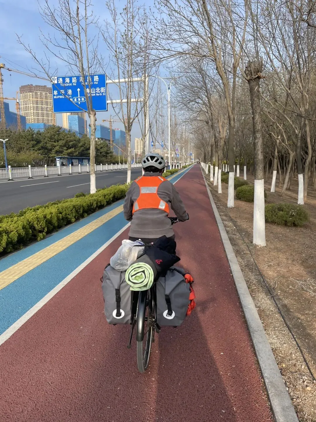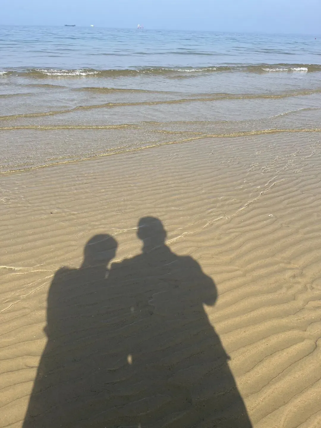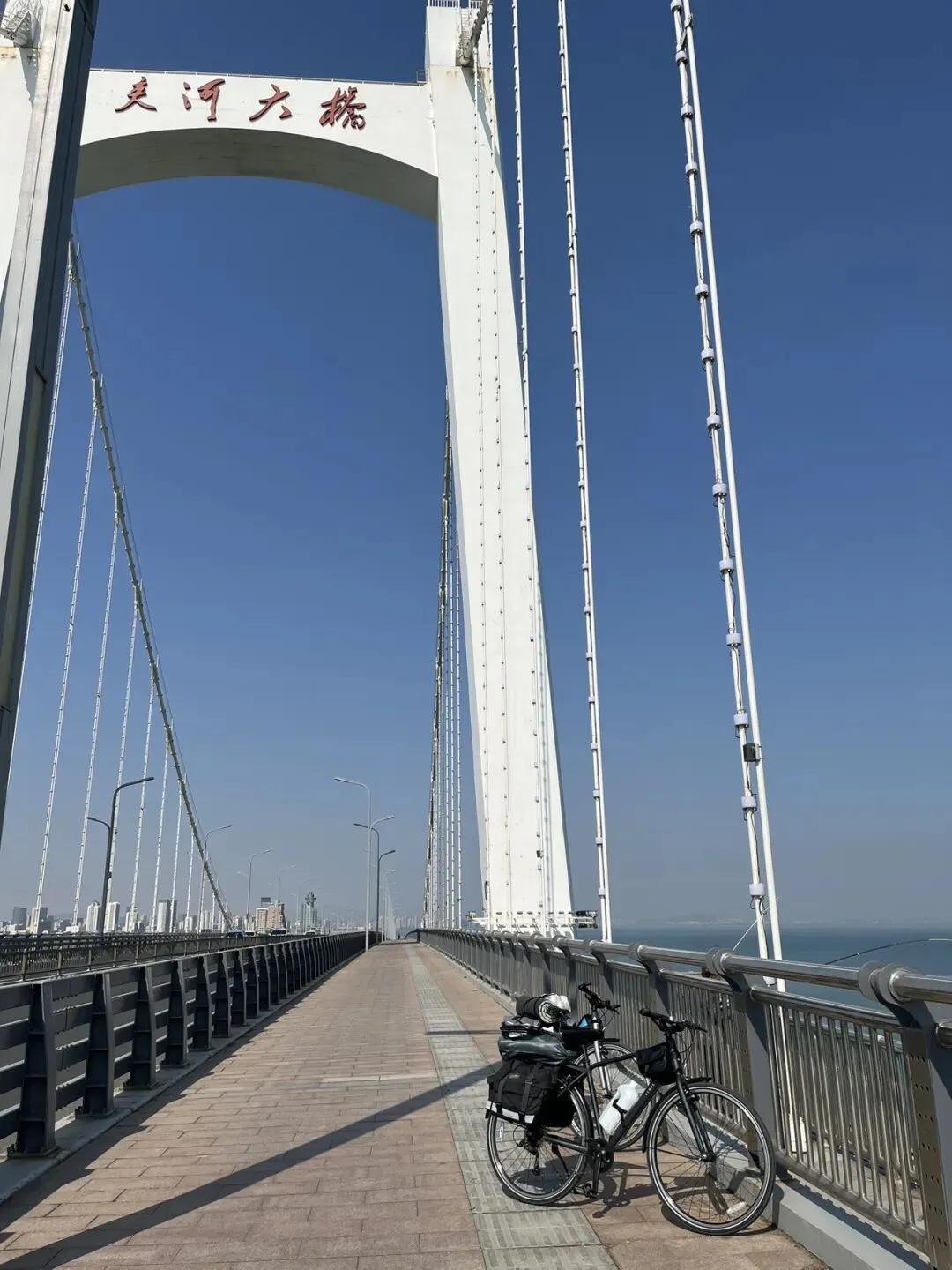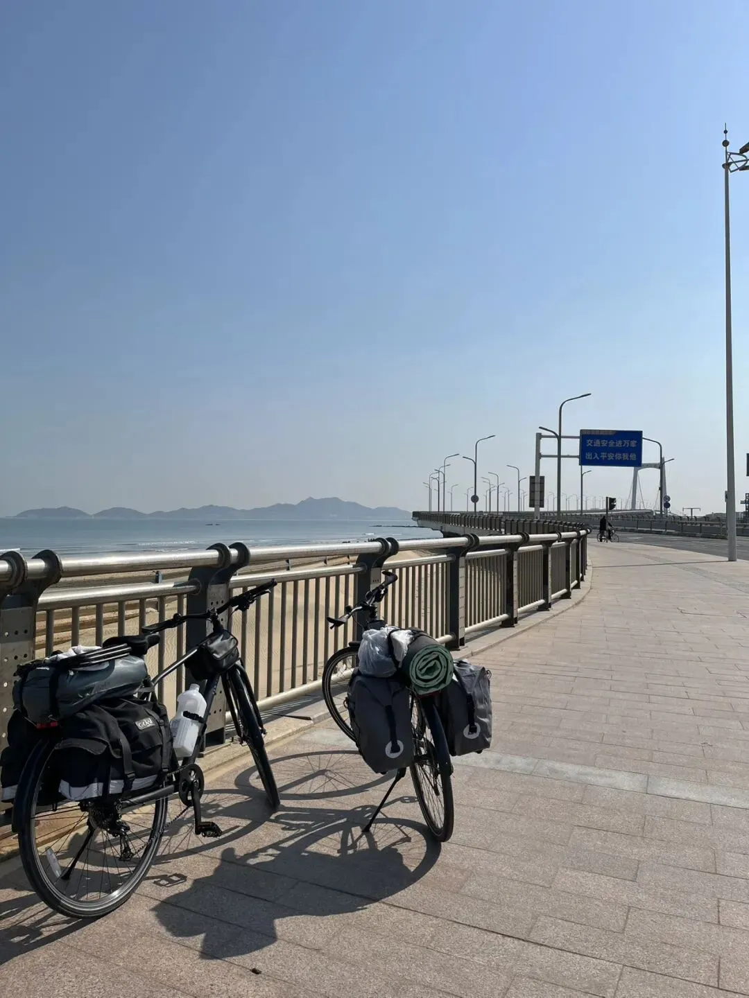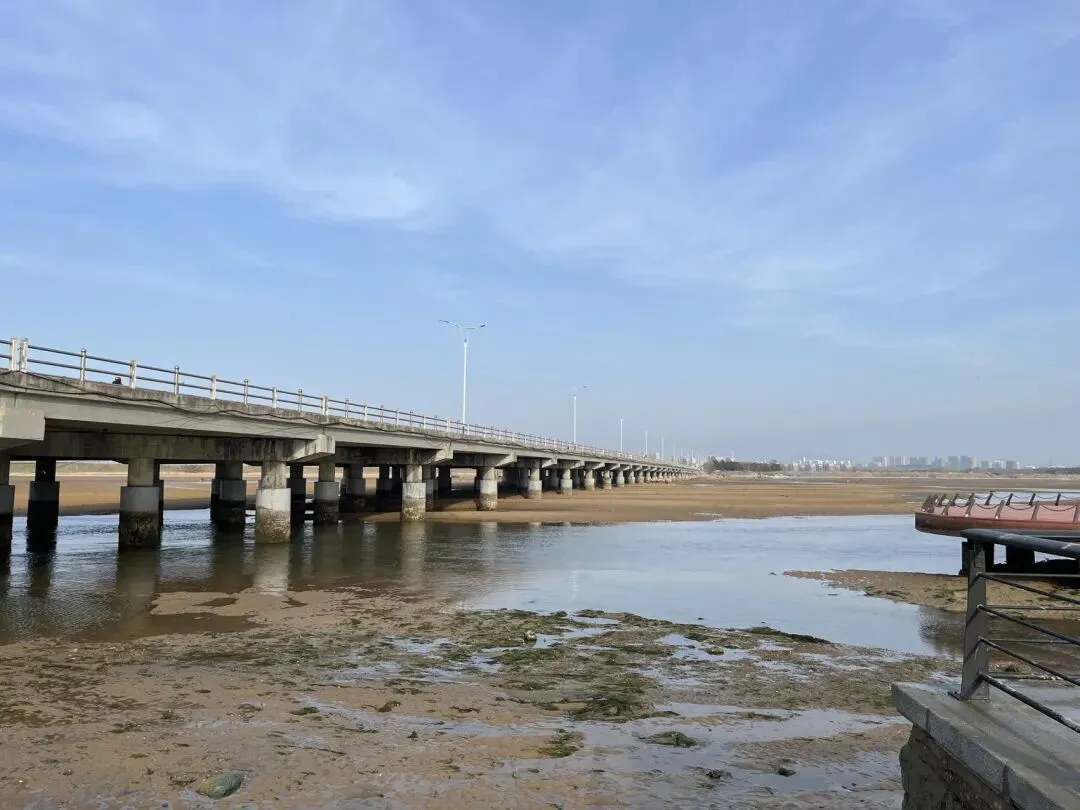 离开烟台山后继续沿海边向东,经过第一海滨浴场、月亮湾、东炮台、海韵广场等到渔人码头,本想转一圈,却发现没办法骑车转圈,只能走东边到千与千寻铁轨后折返快到烟台大学时下到沙滩上玩了一会儿,上来吃了苹果和西红柿,之后就抓紧赶路了过辛安河特大桥前有个公园,又稍微休息了一下。原来有一条河叫逛荡河