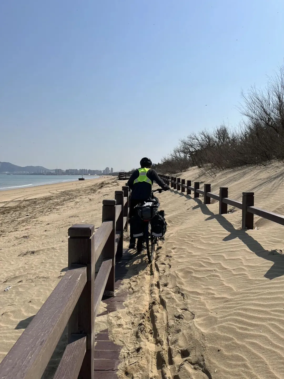 海边的木栈道,开始还好,后来不时被沙子隔断,想来应该是这三天超级大风的功劳