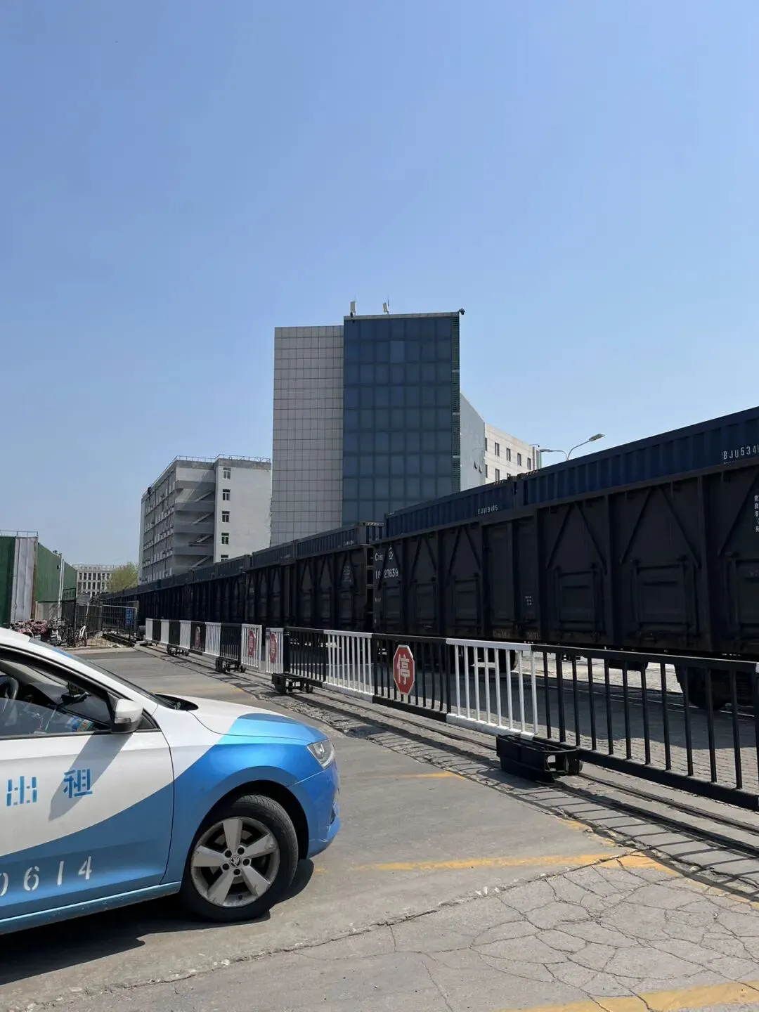 向南转到环海路,过保税区、海关、客运港等,途经烟台站时赶上过火车,拉的集装箱,有没顶的车厢还有平板车。怪异的是走了一半后停了,过了一会儿又倒回去了