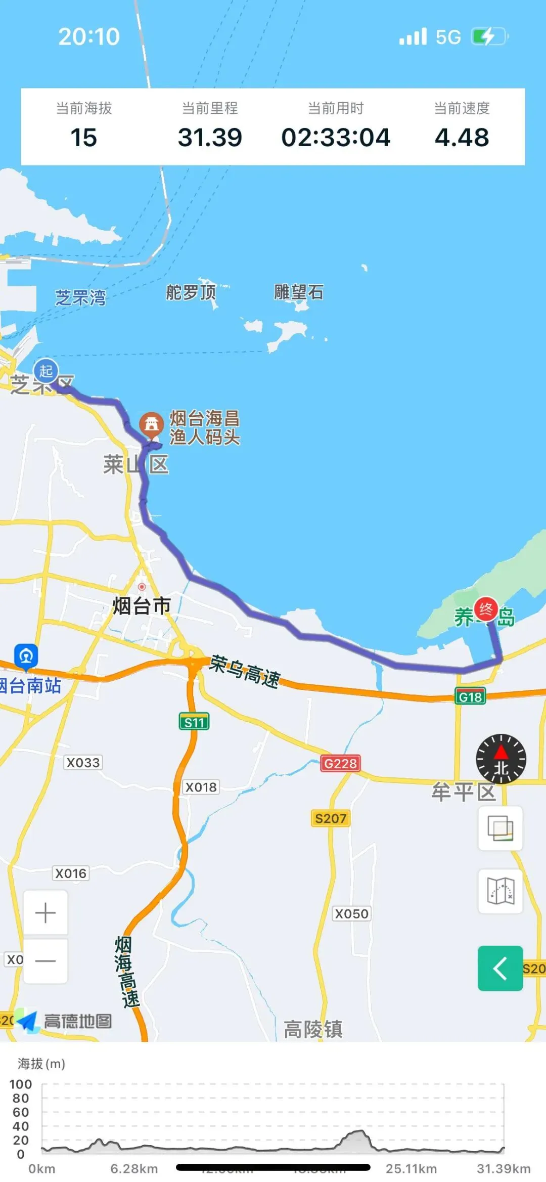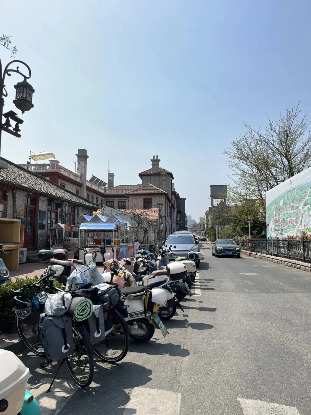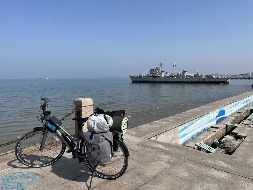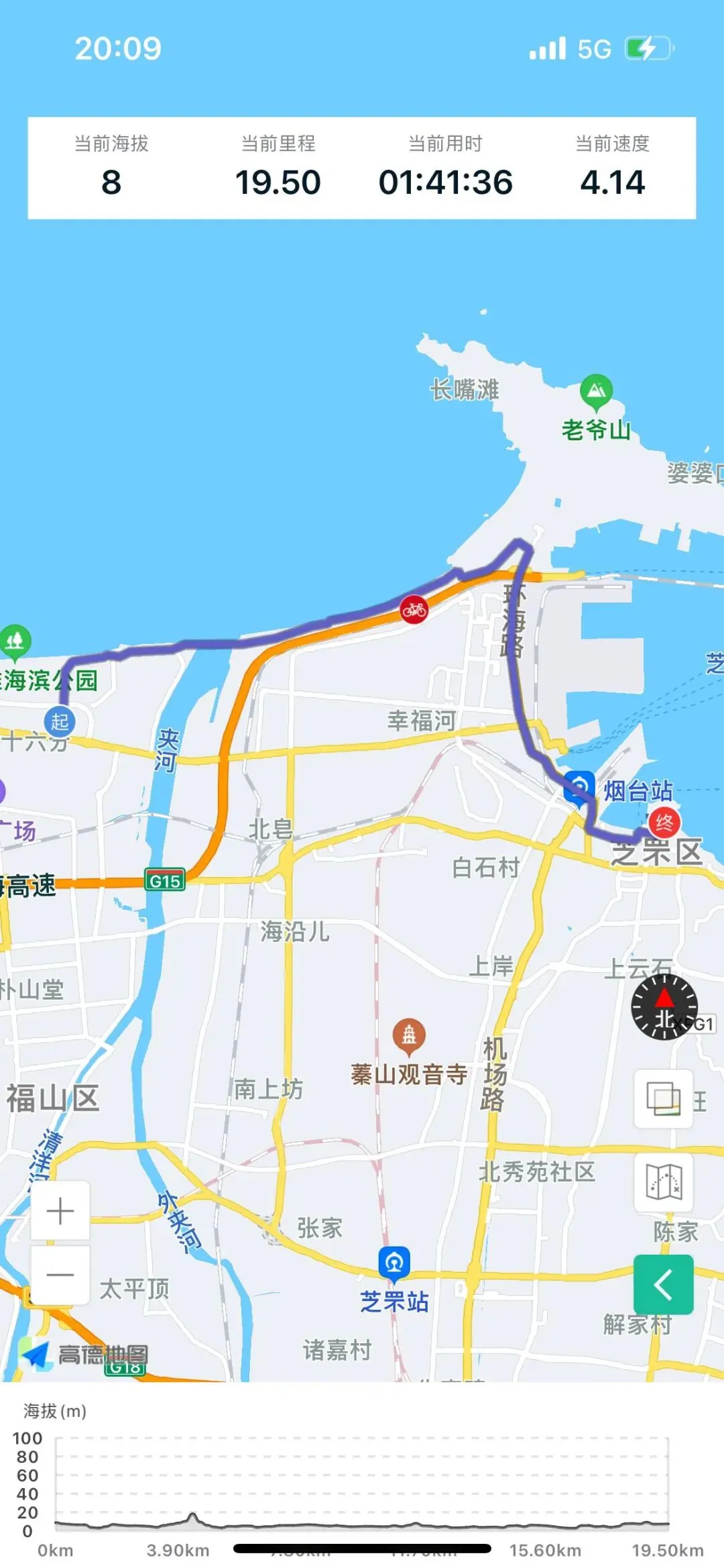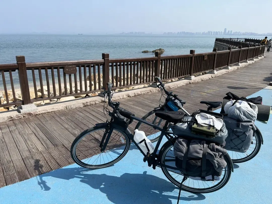 烟台山景区不让自行车进,停了骑行记录,把车子锁路边,背了贵重物品走进去