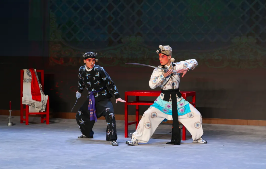 演出中,二级演员王燕带来《谢瑶环》选段“谢瑶环深宫九年整”,其演唱韵味悠长、情感真挚,时而婉转缠绵,时而大气磅礴,赢得台下掌声雷动。最后,彩妆京剧《三岔口》压轴登场,两位演员以精彩绝伦的武打场面惊艳全场,他们动作干净利落、招式刚劲有力,将剧中夜间搏斗的紧张氛围展现得淋漓尽致,充分体现了京剧“以形传神”的艺术精髓。