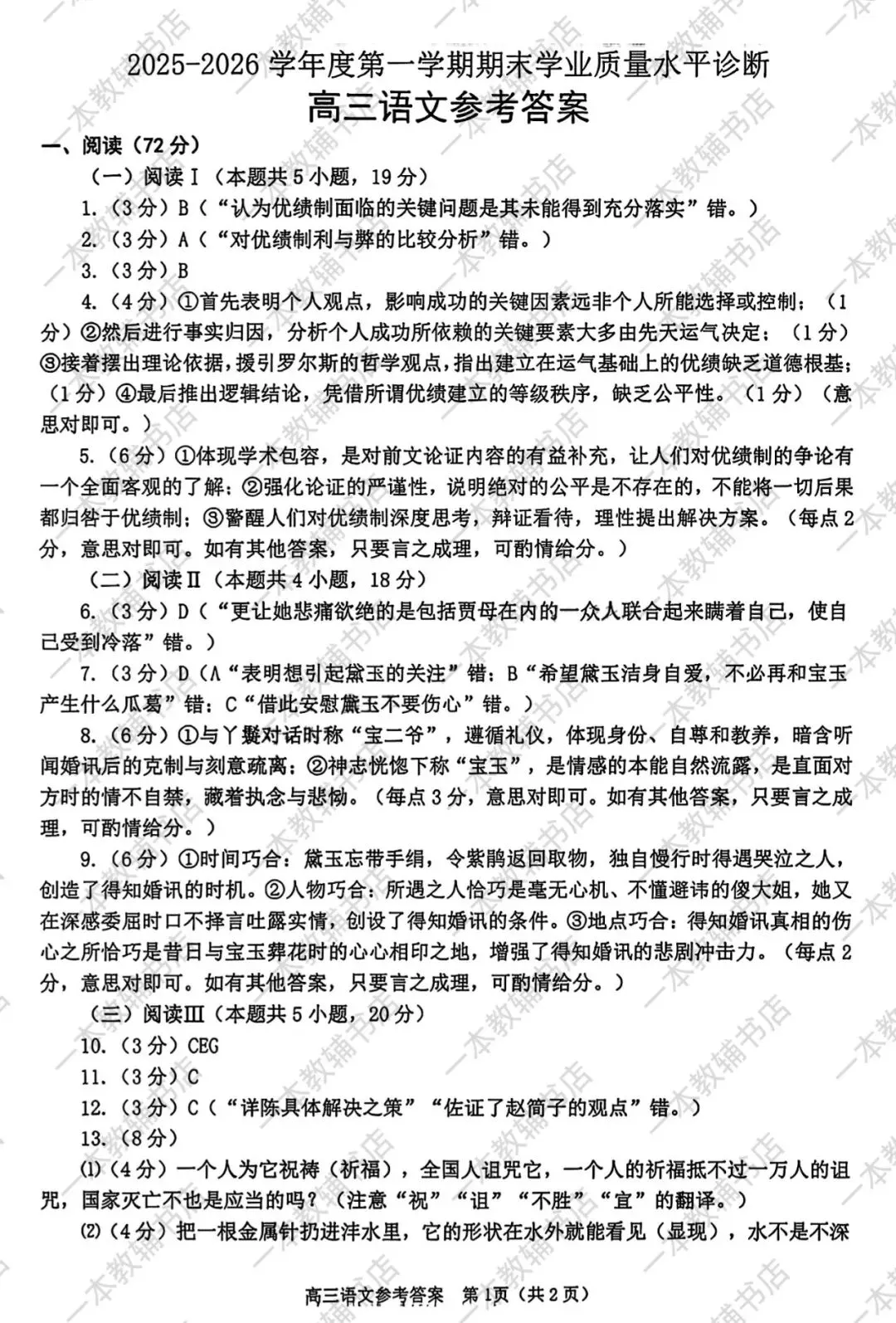 【山西省太原市】2025-2026学年第一学期高三年级期中学业诊断‖全科(含听力音频)