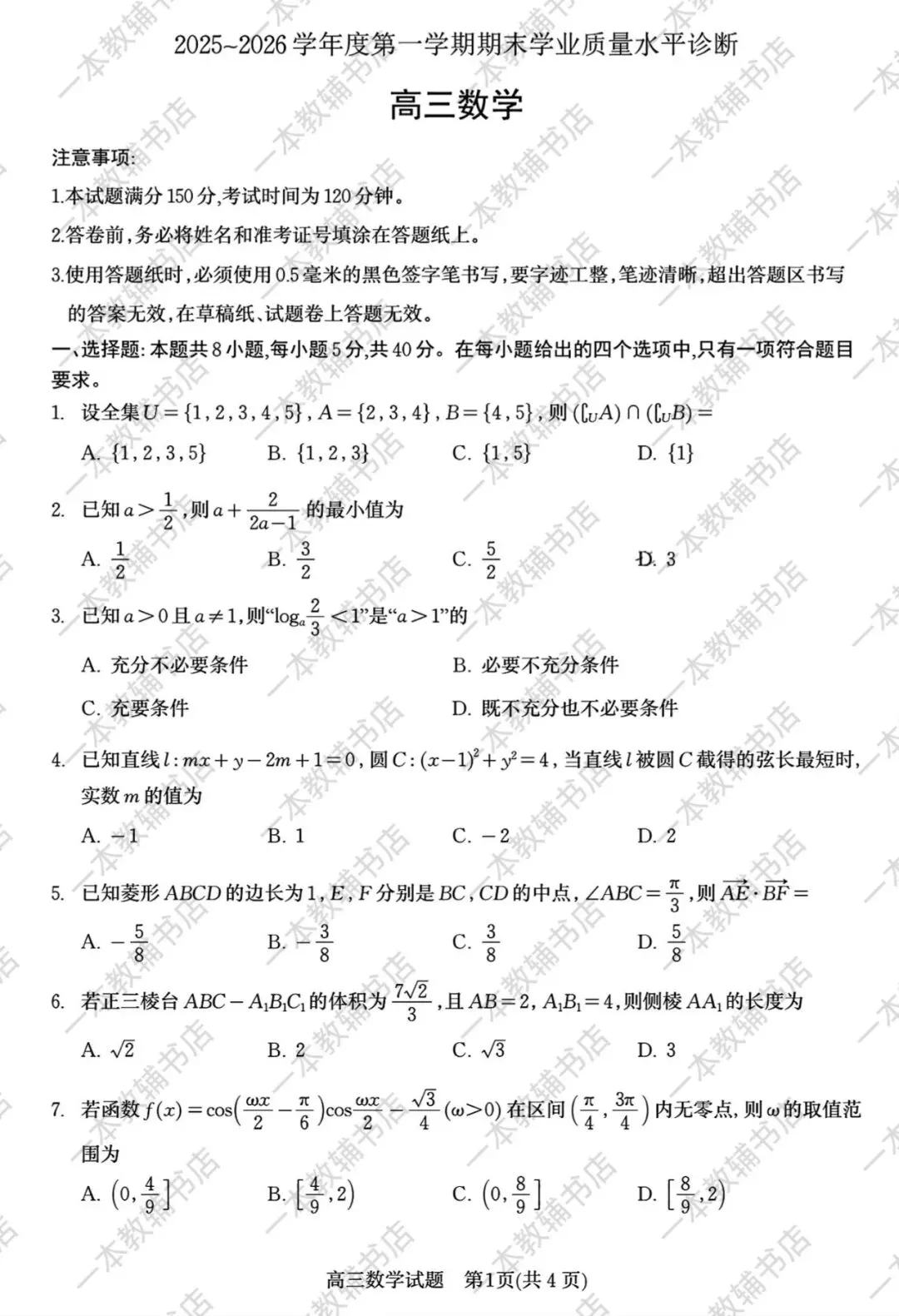 【蓉城名校联盟】四川省成都市2026届高三年级第一次联合诊断性考试‖全科(含听力音频)