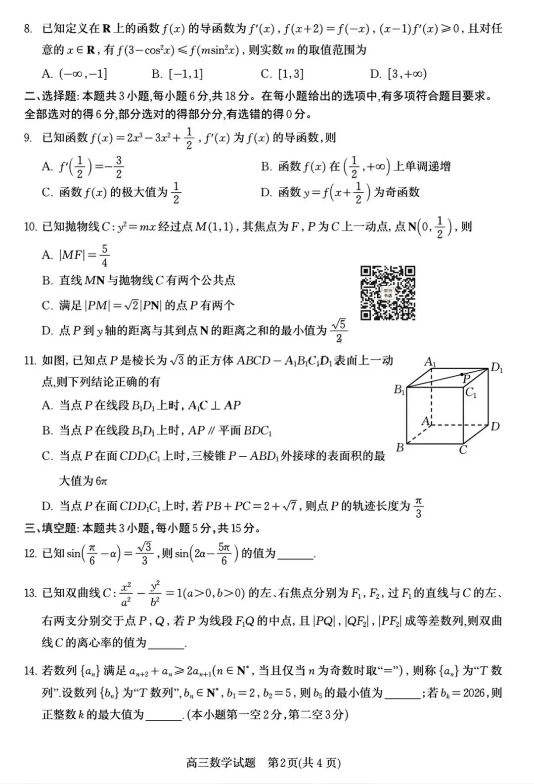 【天府名校大联考·四川省高三一轮复习阶段性测评】绵阳南山中学2026届高三第四次教学质量检测‖全科(含听力)
