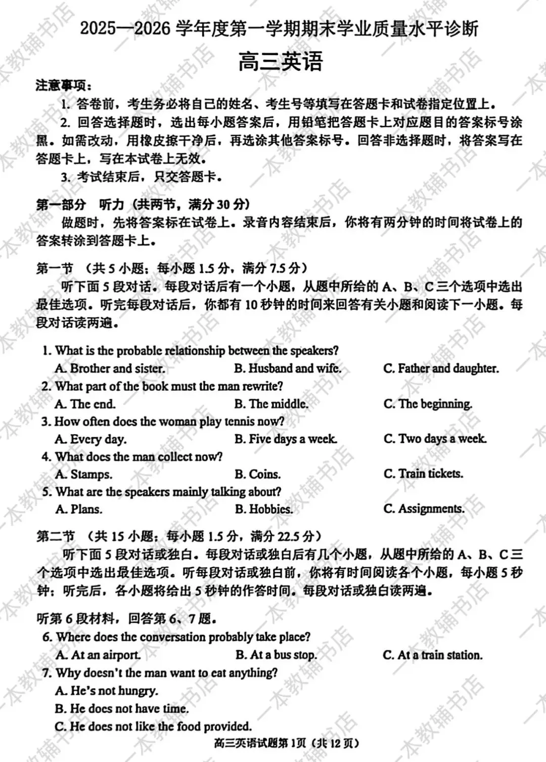 【河北省邢台市卓越联盟】2025-2026学年高三年级上学期12月联考‖全科(含听力音频)