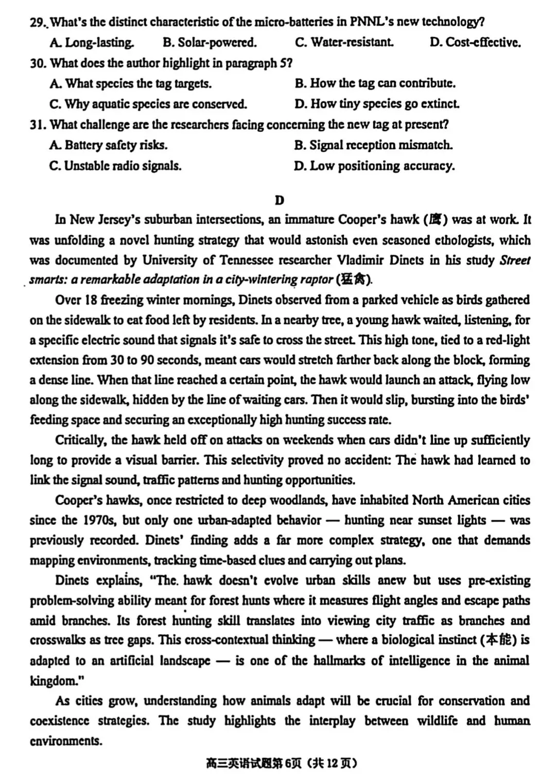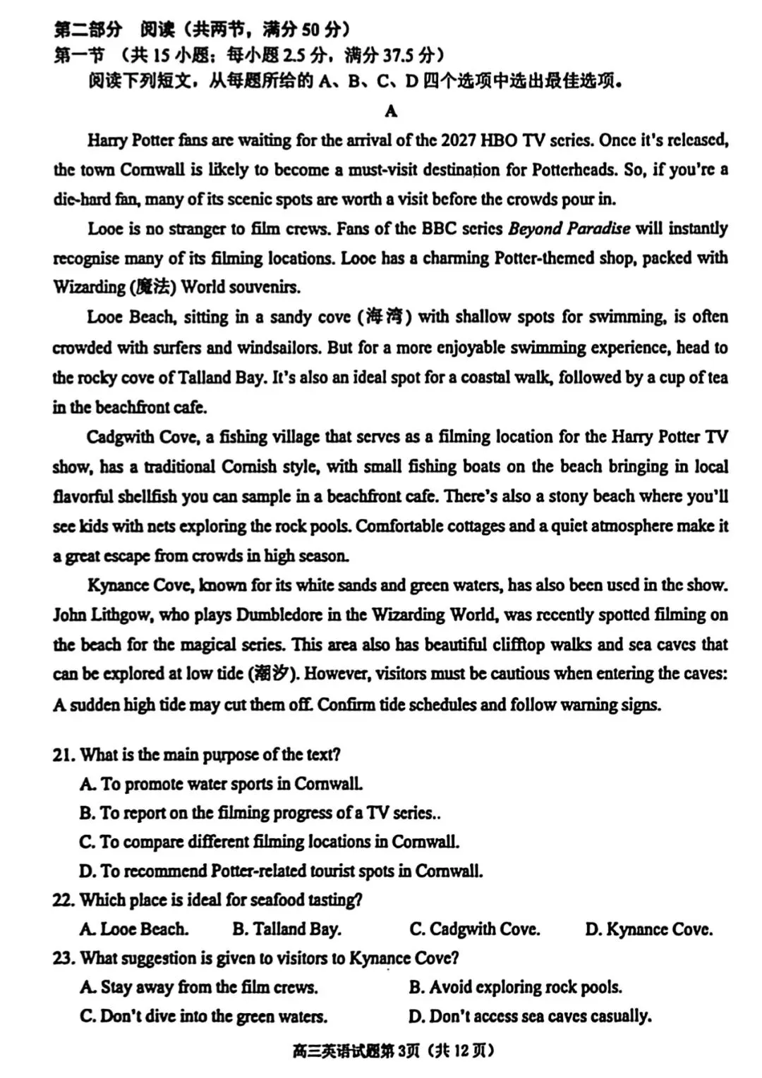 【Z20名校联盟(浙江省名校新高考研究联盟)】高三第二次联考‖英语、物理、化学、生物学、历史、思想政治、地理