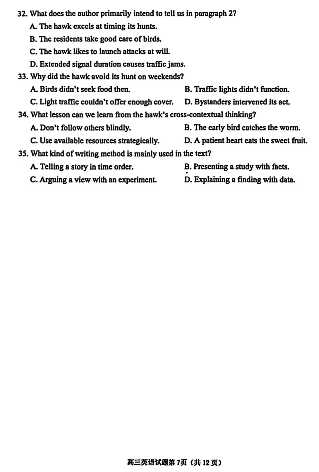 【杭州一模】浙江省杭州市2025学年第一学期高三年级教学质量检测‖全科(含听力音频)