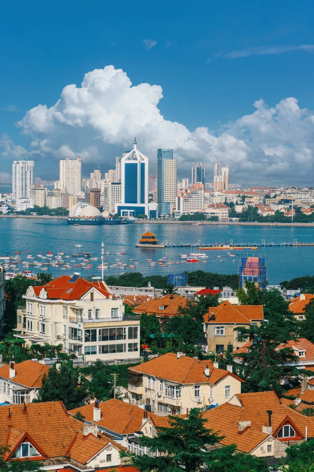 小鱼山公园往西看,红瓦配海,层次明显。