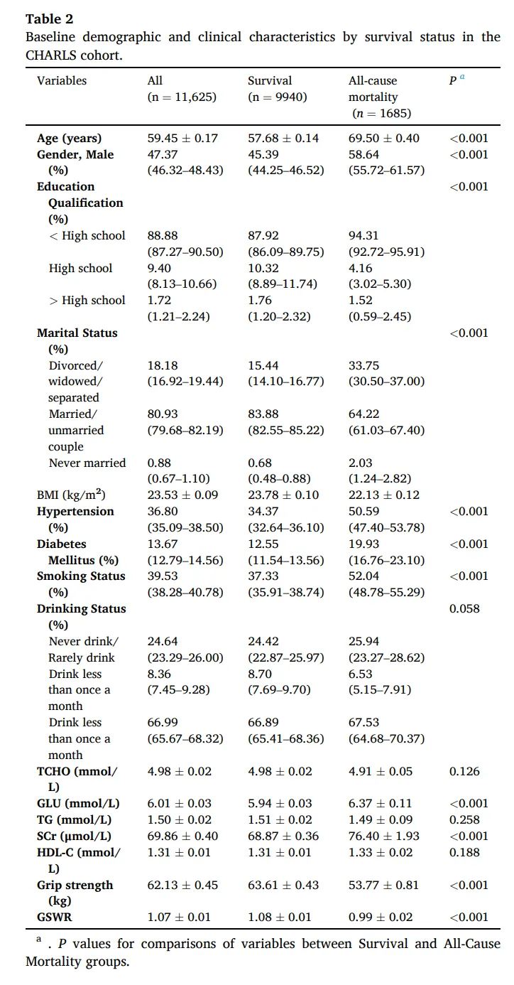 通过以上结构化的梳理,可以清晰理解研究的核心内容及其临床意义。这项研究通过分析GSWR与健康指标之间的关系,为临床实践提供了重要的指导,特别是在中老年人群体的健康管理和疾病预防方面。掌握这些内容对于提升科研能力和临床干预策略具有重要意义。