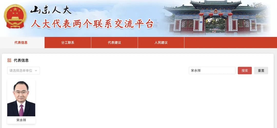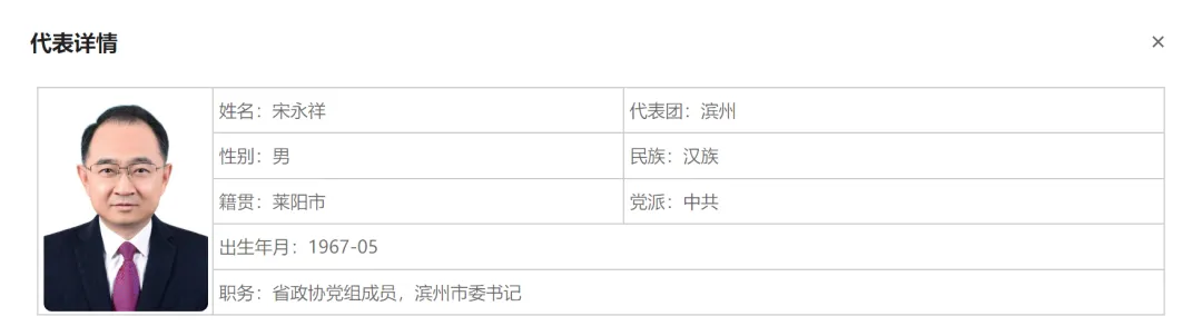 据山东人大官网代表信息一栏显示,滨州市委书记宋永祥,已任山东省政协党组成员。