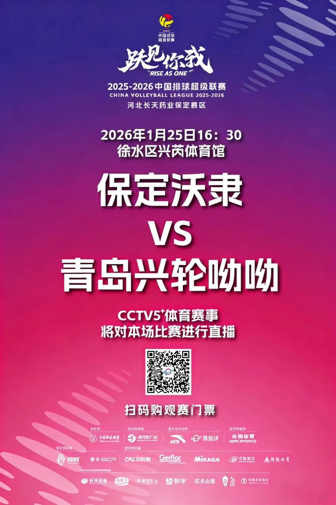 诚邀广大排球爱好者、社会各界朋友莅临现场,用最热烈的呐喊为保定沃隶男排加油助威!