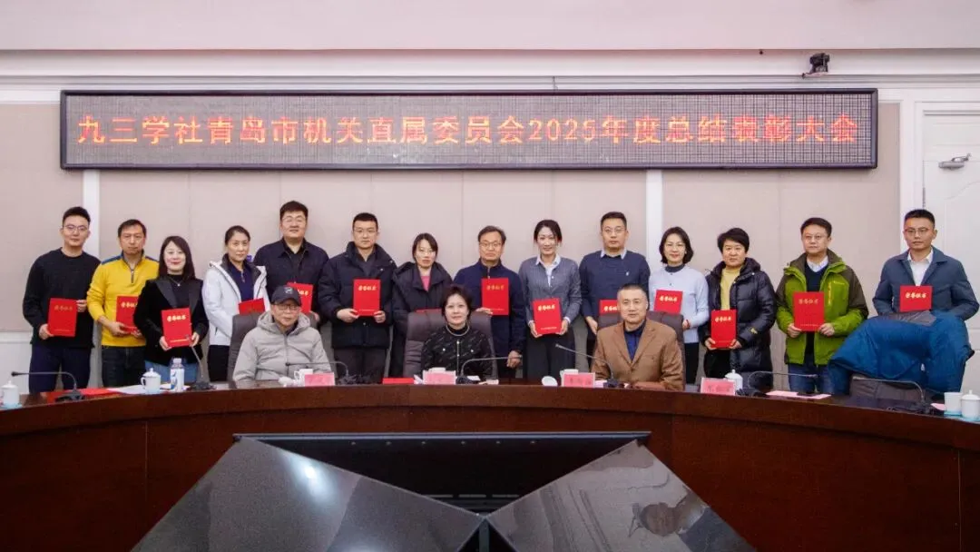2026年1月23日,九三学社青岛市机关直属委员会2025年度总结表彰大会在青岛市民主党派机关五楼会议室召开。会议全面总结了九三学社青岛市机关直属委员会过去一年在思想建设、组织发展、参政议政、社会服务等方面取得的成绩与经验,深入分析了当前面临的形势与任务,并对在各项工作中表现突出的先进集体和优秀个人进行了表彰奖励。九三学社青岛市委员会秘书长刘宝霞、组织处处长朱松君、原秘书长武建平应邀出席会议。