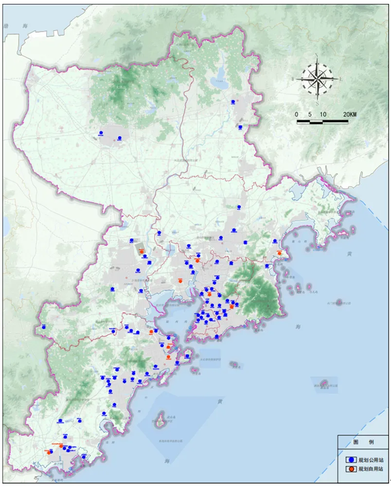 此次《专项规划》明确,要在碳达峰、碳中和背景下,通过适度超前布局,科学引导加氢站建设,率先在交通领域实现突破,引领青岛市氢能基础设施大发展,打造国际化氢能都市,建设“东方氢岛”。对外联系上,加速融入省域“两横两纵”干网框架,打通济南-青岛横向走廊的“最后一公里”,同步构建以青岛为中心的“一轴三线”胶东加氢圈,推动胶东半岛加氢网络一体化发展。在市域内组建“一环两翼三港四轴”的加氢体系,即以胶州湾为中环,以西海岸和东岸为两翼,以前湾港、董家口港和胶东空港为核心节点,沿国、省道(S219、G204、G228、滨海大道)建立四条轴线向市域延伸,形成触及全域的加氢脉络。