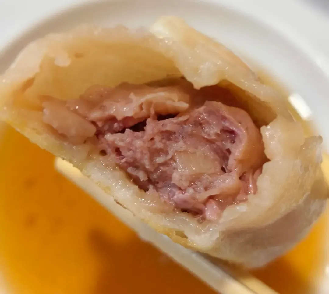 蛤蜊肉锅贴:蛤蜊的清甜混着猪肉的油香,还有面皮焦香和姜末的辛香打底,没有一点腥气,只有刚出锅的热乎气儿裹着鲜,闻着就想赶紧夹一个塞进嘴里。咬开时 “咔嚓” 一声响,面香混着油香瞬间在嘴里炸开。内里的馅料是软嫩的弹,猪肉的鲜混着蛤蜊的甜,咬开能看见颗粒分明的蛤蜊肉,带着点姜末的辛香,油润润的却不腻,连面皮都浸着鲜汁,得赶紧吸一口,不然鲜汁顺着指缝往下滴。