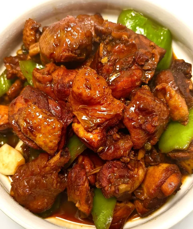 选用那种满山跑的小公鸡,剁成小块,不过油,直接下锅生炒。铁锅烧得滚烫,葱姜蒜和干辣椒一下去,香味就炸开了。必须得用本地的酱料,大火收汁,把酱香逼进每一丝肉纤维里。端上来时,肉质紧实弹牙,不是那种软烂的口感,而是带着一股子倔强的嚼劲,越嚼越香,配上刚出锅的贴饼子,绝了。