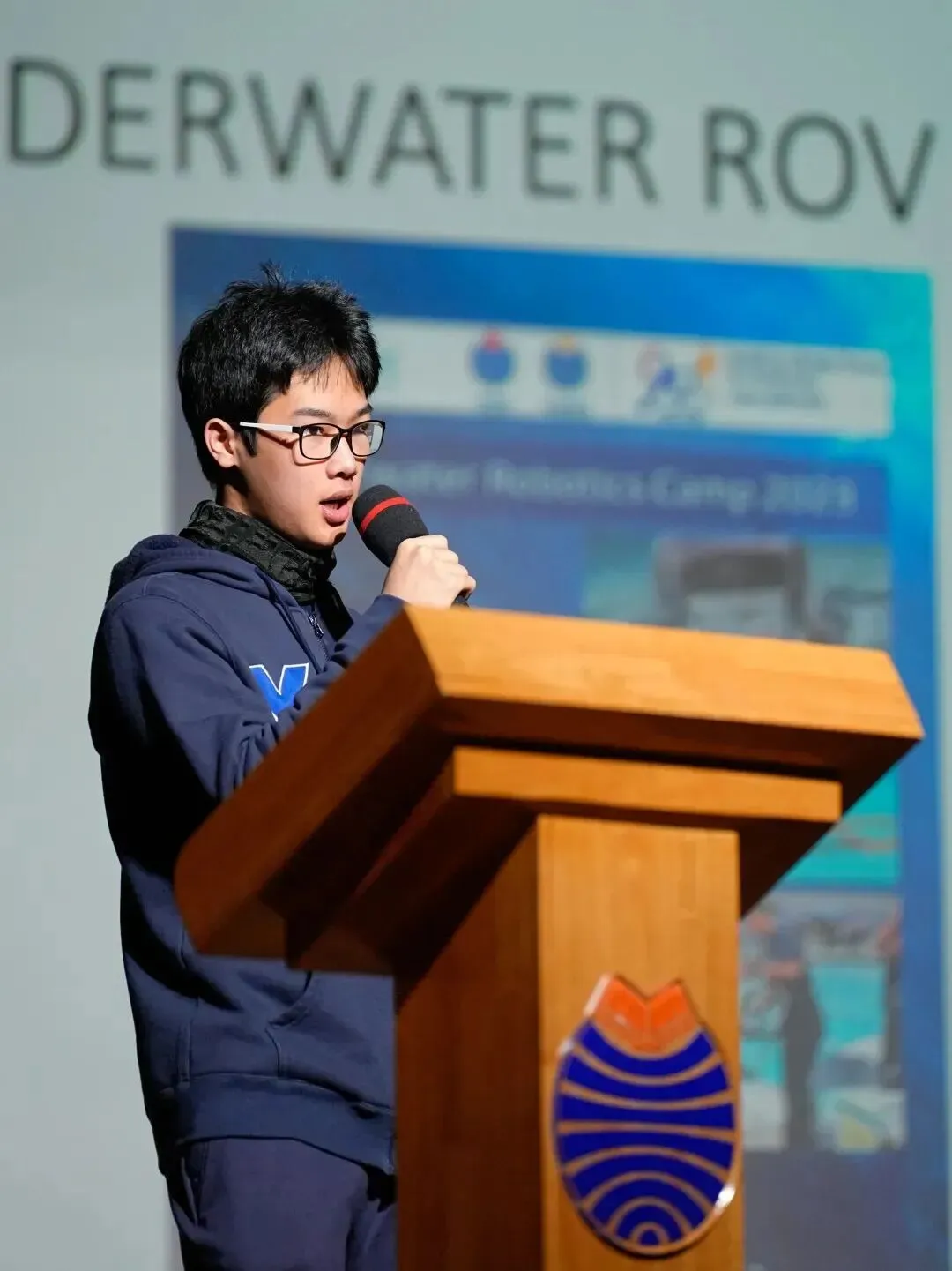 在耀华,Jerry 对于科学的热情正好遇上了相匹配的机遇。机构的未来教育部提供了很多推动学生科学发展的项目。Jerry 参加了由剑桥教授带领的原子物理线上工作坊,以及水下机器人的实践项目。