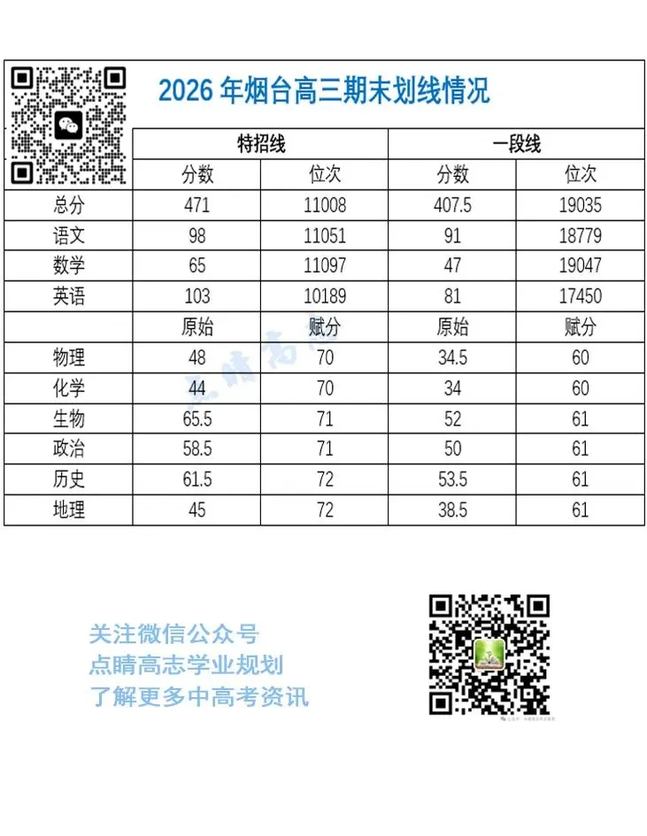 >2026年烟台高三期末划线情况