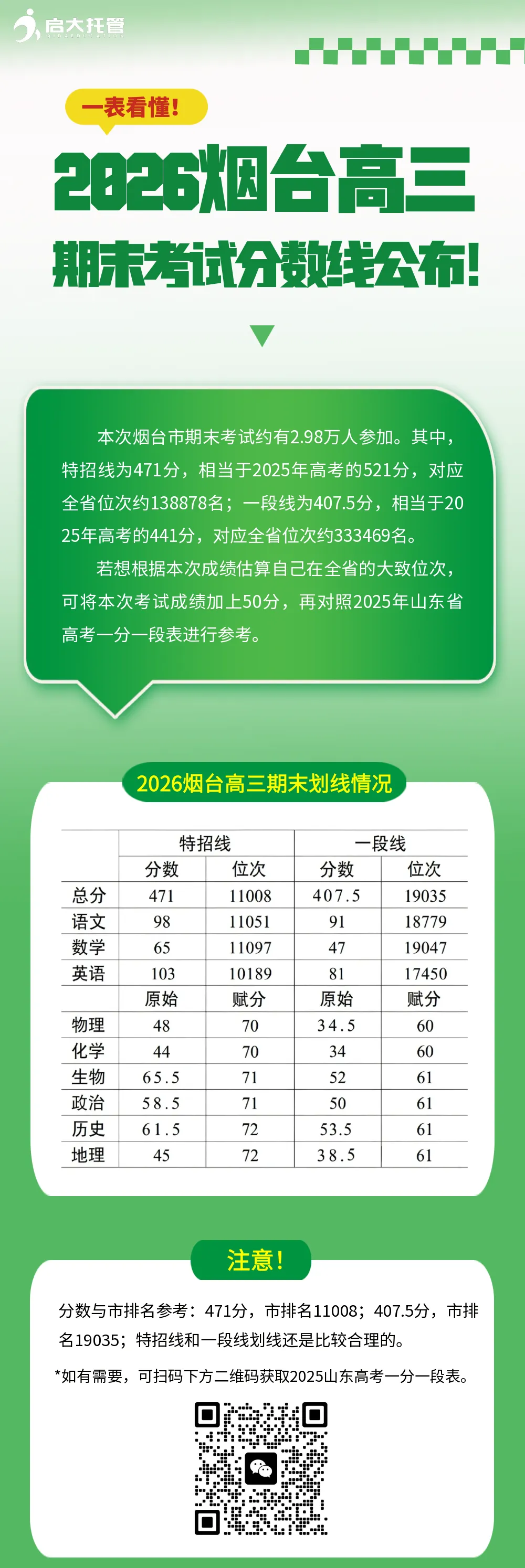 · 烟台启大教育致力服务于烟台各年级的同学与家长,我们定期为大家分享专业的家庭教育,提分策略,中高考政策,学习资料等。