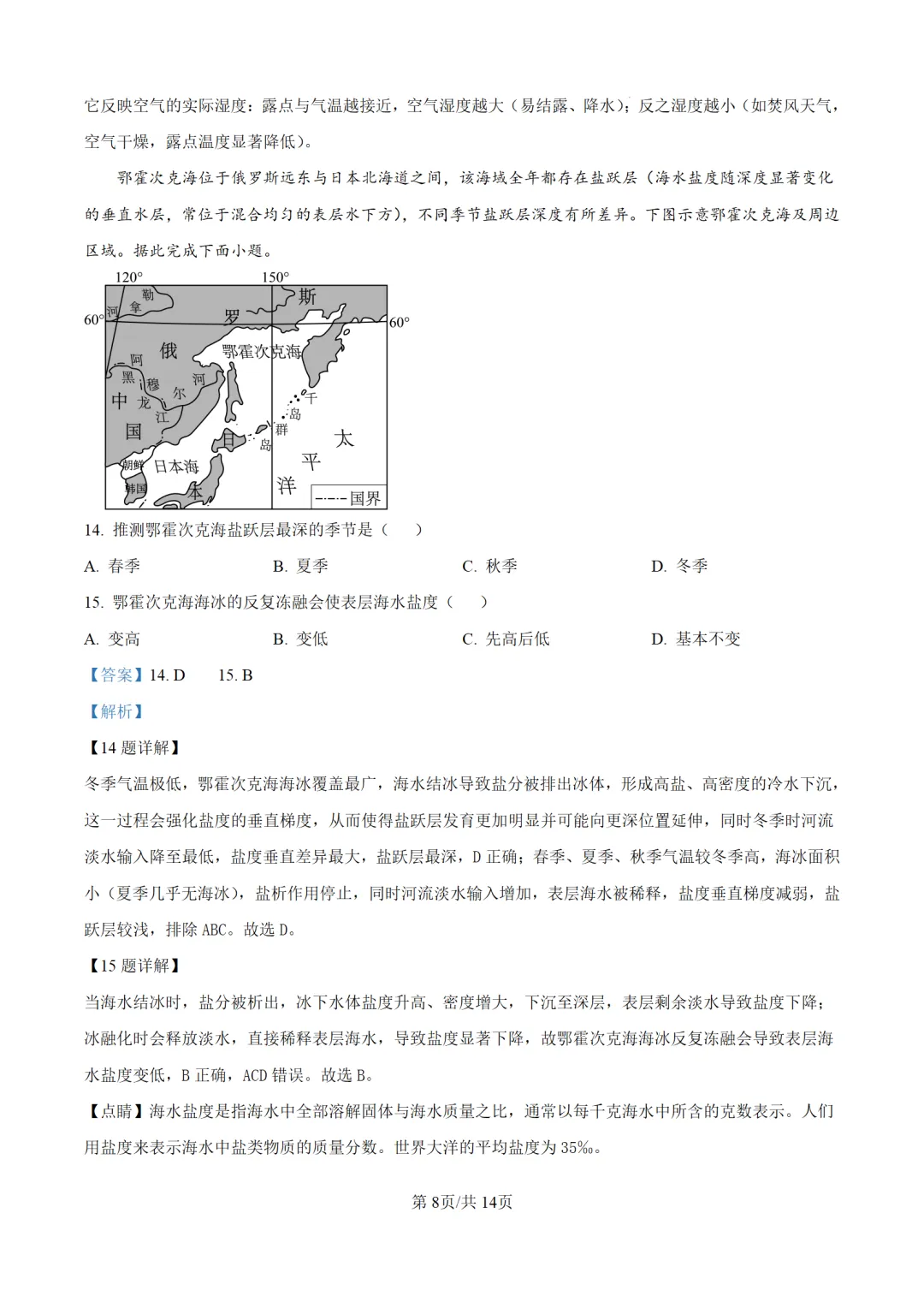 【地理热点】解析:2025年高考山东卷地理高考真题解析(参考版)