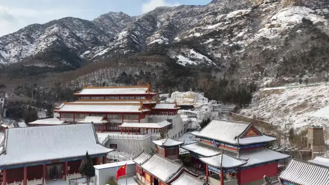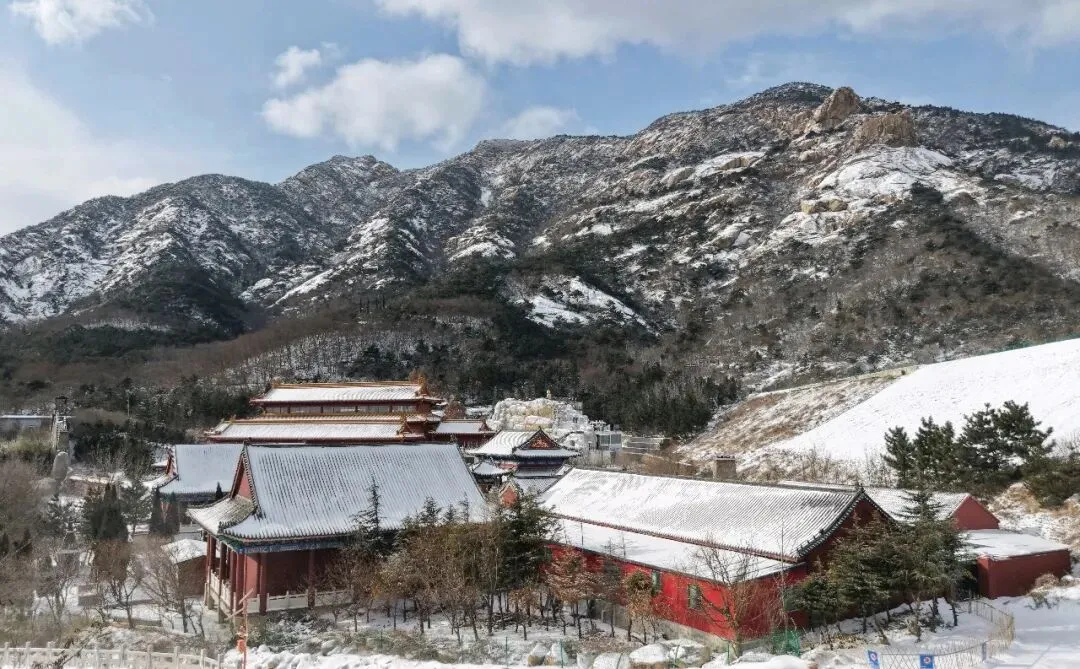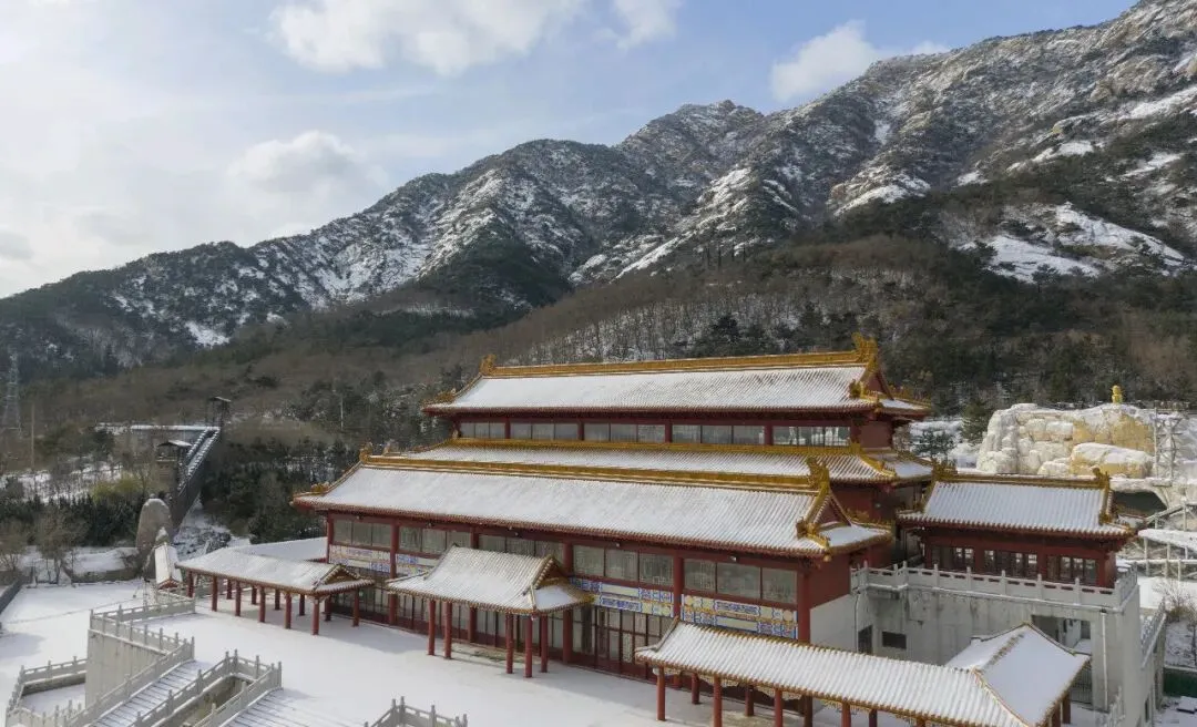 古建的飞檐翘角积着蓬松的雪,黛瓦银顶,与皑皑山野相映,中式美学的温婉与冬日的苍茫撞个满怀,每一步皆是风景,每一帧都藏着胶东冬日独有的浪漫。