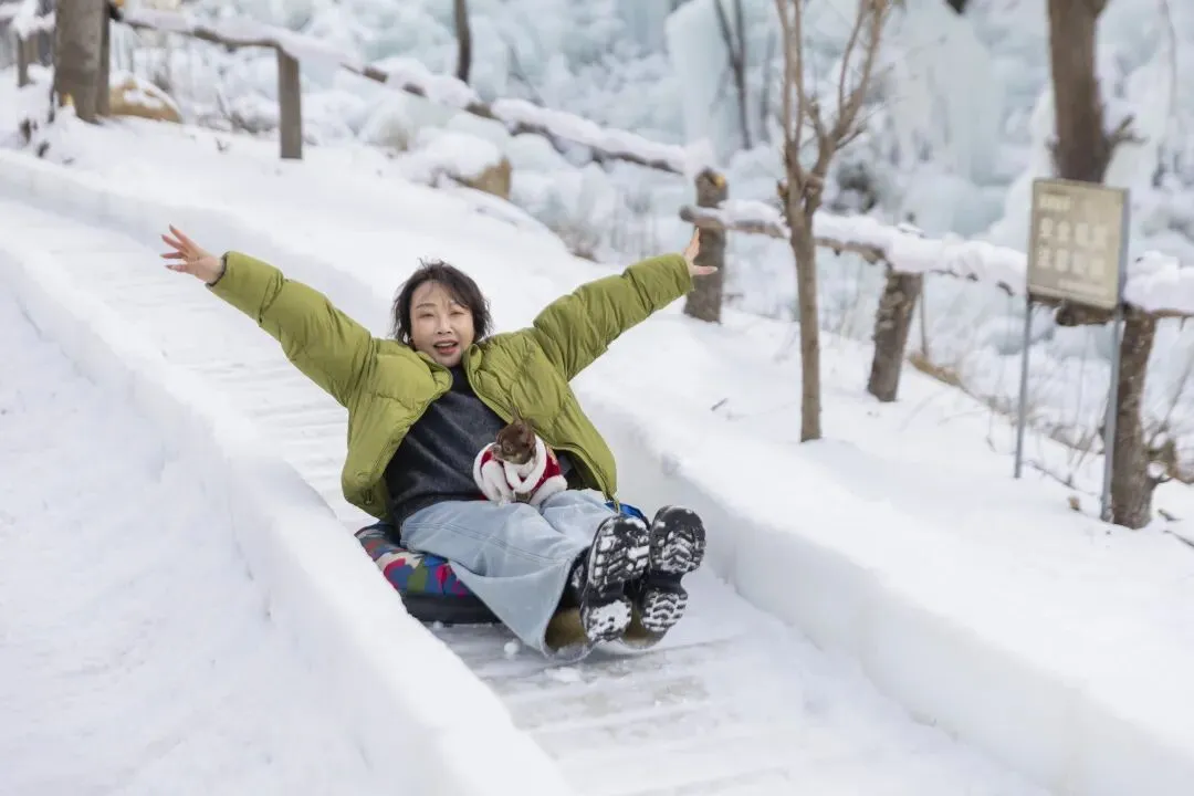 4. 拍完冰瀑可前往隔壁罗山滑雪场,初级道、雪圈道均开放,新手也能轻松体验,雪道灯火开到晚七点,可解锁夜滑乐趣;