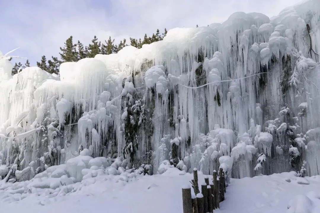 1. 冰瀑核心区:30米巨型冰瀑宛如水晶滑梯,还有“尔滨”同款冰道可体验,夕阳西下时冰柱镀上玫瑰金,随手拍都是氛围感大片;