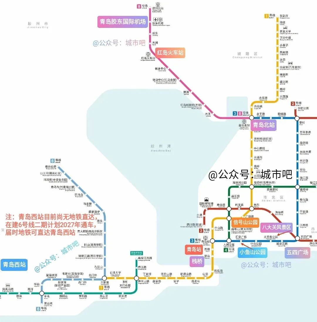 据官方消息,目前青岛在建的8条线路共154公里,按照计划2028年前全部开通,届时青岛地铁运营里程将突破500公里,达到506公里。