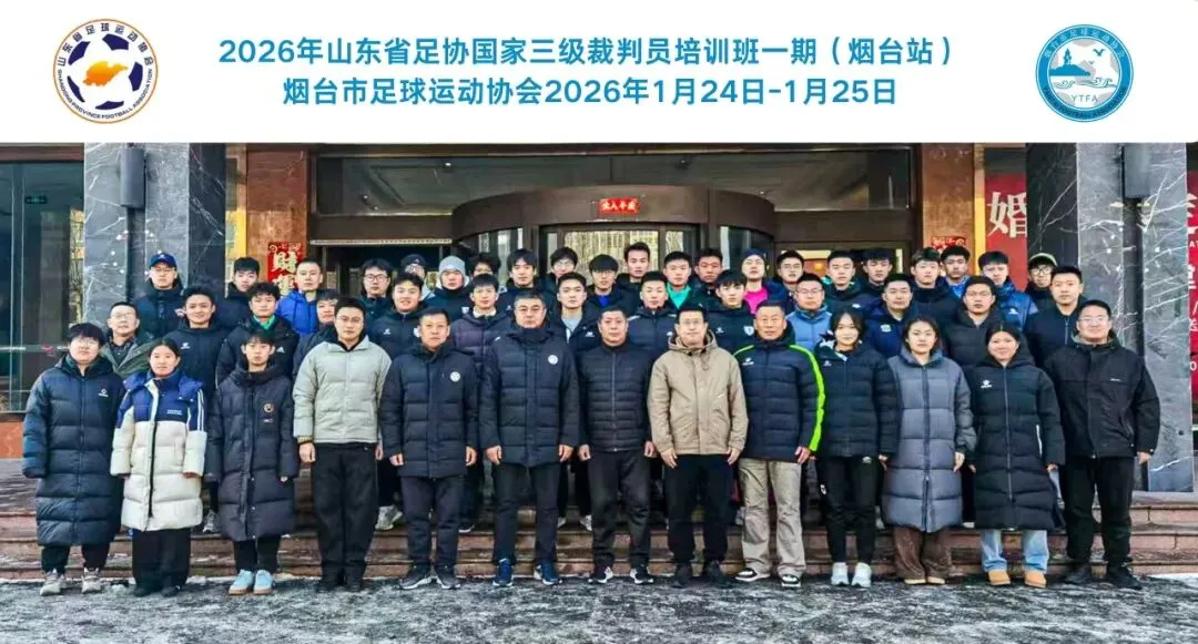 25日,2026年山东省足协国家三级足球裁判员培训班在烟台市第十五中学圆满结业。在为期两天的课程中,授课讲师以最新的足球竞赛规则为基准,培训内容分为基础理论和场地实践,从规则精神、规则变更、判罚尺度、团队配合等方面向学员们进行细致讲解与探讨,近50名学员们将通过具体的实践提高自身业务水平。