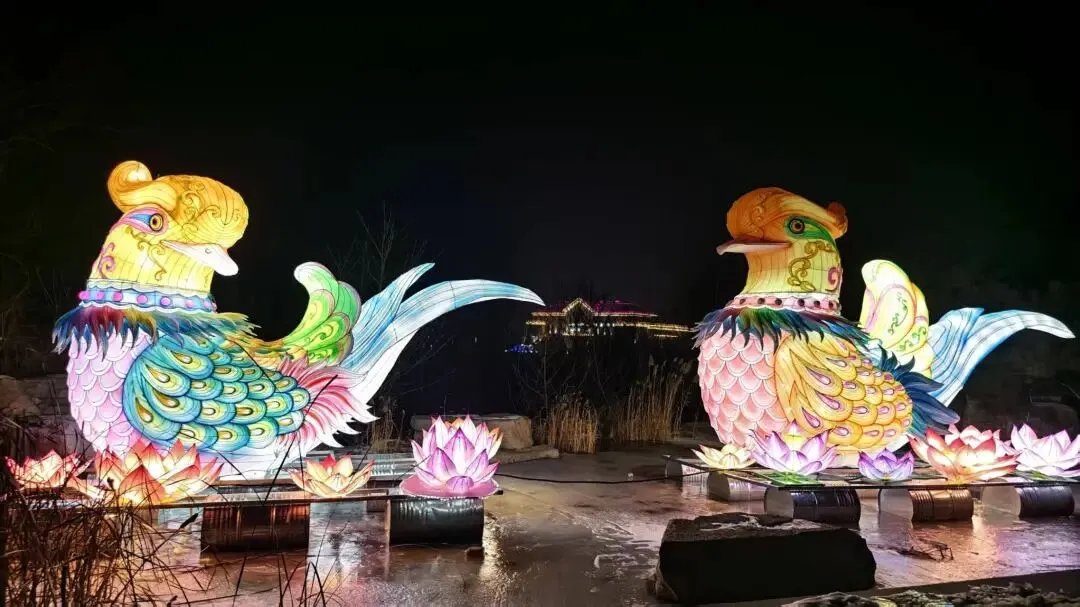 今年植物园灯会将传统灯艺与现代科技巧妙结合。在传统灯组区,“十二生肖贺岁”“福禄寿喜”等主题灯组延续了传统制灯工艺。其中,兔子、鲤鱼、老虎、鸳鸯灯组设计精巧,一些夜晚在这里散步的市民驻足拍照打卡,提前感受到了灯会的魅力。