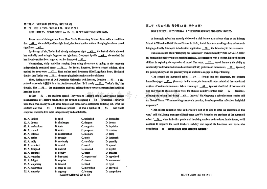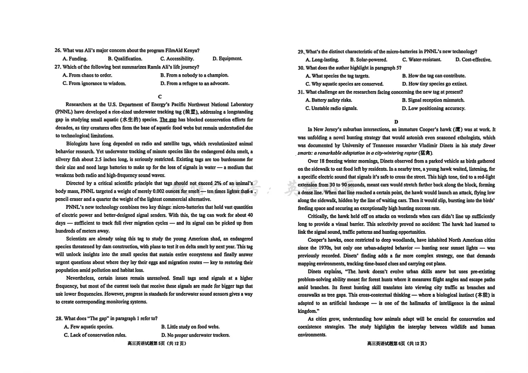 >烟台市高三英语2025-2026学年度第一学期期末高三