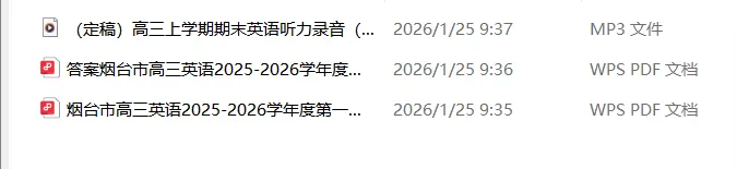 烟台市高三英语2025-2026学年度第一学期期末高三