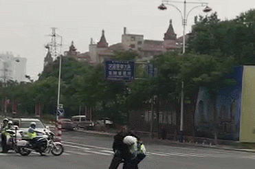 正在执勤的交警秒变“人肉盾牌”,