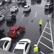 过路车辆的热心礼让,