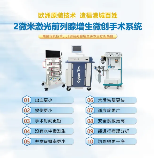 高效安全:激光能量集中于增生腺体,能高效剜除组织并同步凝固血管,术中出血少,降低了输血风险及传统电切可能引发的并发症。
