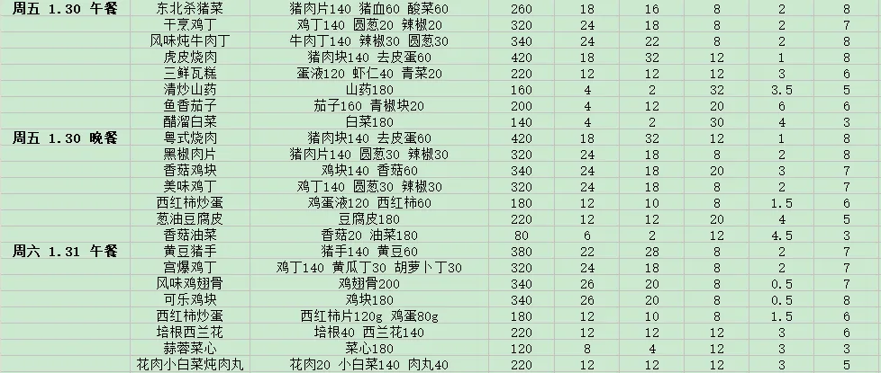 这一周,我们把年味悄悄藏进餐盘:东北杀猪菜的豪爽、宫爆鸡丁的微辣回甜、虎皮烧肉的酱香浓郁……每一道菜,都写着“带量”二字——不是冷冰冰的数字,而是140克牛肉配30克圆葱的精准,是180克西兰花里藏着的维生素C,是一颗可乐鸡翅背后的童年味道。