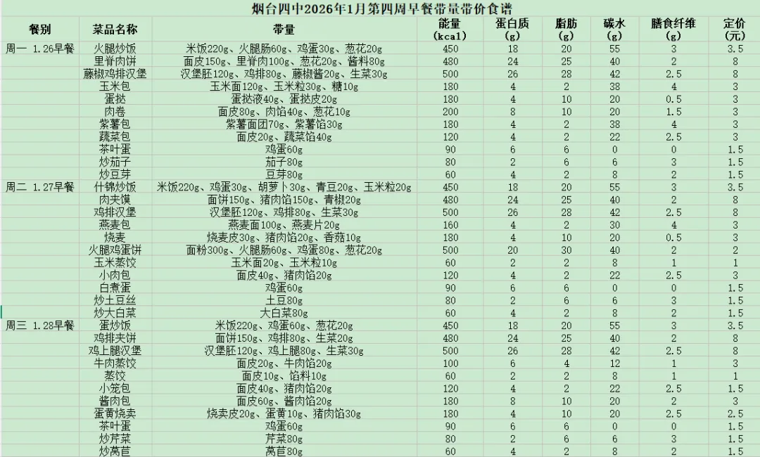 3.定价标准:定价基于食材采购成本、加工成本及学校食堂公益属性制定,统一以“元 / 份” 标注,供师生按需选择。
