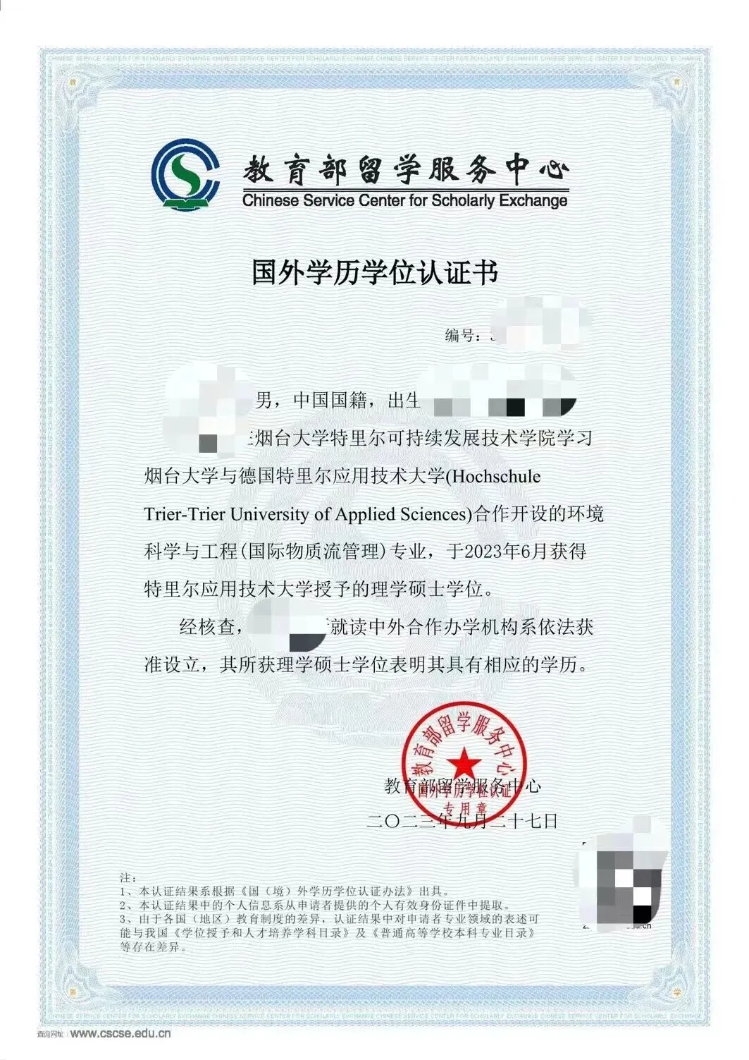 学生在中国教育部留学服务中心中外合作办学学生注册系统注册,在德国特里尔应用技术大学进行学籍注册。