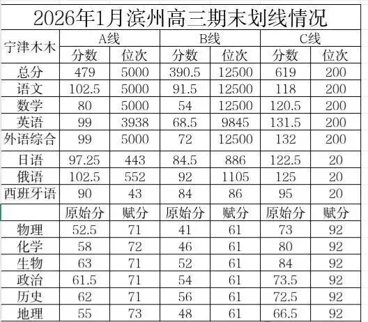 上线率达63%!2026年1月烟台、滨州高三期末划线出炉!