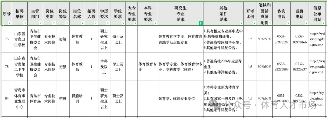 (三)取消或核减计划、有关笔试信息等在青岛市人力资源和社会保障局网站(https://hrss.qingdao.gov.cn)上予以公布。其他信息在各招聘单位官方网站上予以公布。