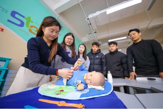 建构托育师资队伍。恒星托育中心依托学校优质的师资背景、学术和专业资源,建立了专业的研究团队。团队充分利用高校师资、智库等资源,打造了“幸福教养工程课程特色体系”。现有教授5人、副教授12人,拥有教育学、医学、卫生学、护理学、保健学的专兼职教授43人。恒星托育中心通过政府部门引领,大学培养人才、联通各方,利用企业先进的产品和技术赋能课程等,实施“泛在式+学社制”人才培养体系、“师徒+朋辈”学习体系、“能力+素养”评价体系、“教学+集团”保障体系,确保学生在深刻理解理论知识的同时提升实践能力和创新创业能力。通过在“双环境、双导师、双角色、双课程、双评价”的多重融合下,园校院实现人才链与产业链的衔接,推动产教融合、园校院共赢。