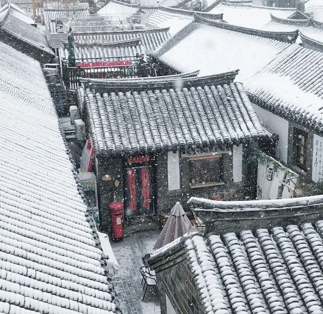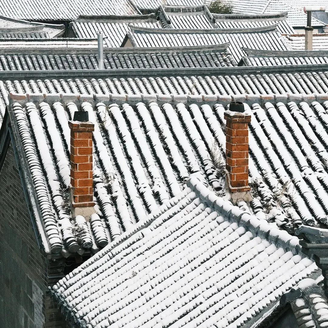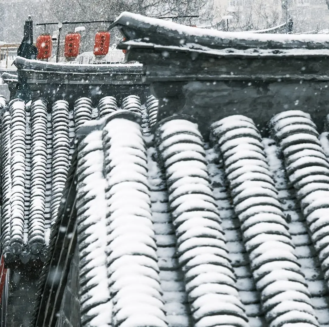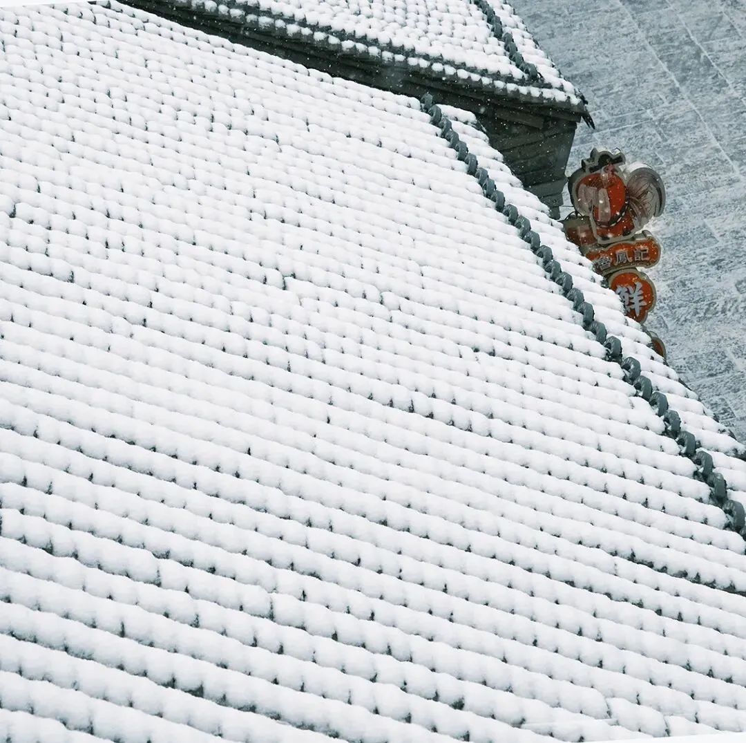 当落雪洒满街道,覆盖青瓦,古城便披上银装。鳞次栉比的屋檐翘脚,在素白中勾勒出浅淡的墨线,把古城润染成一幅水墨画卷。