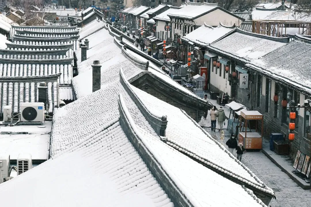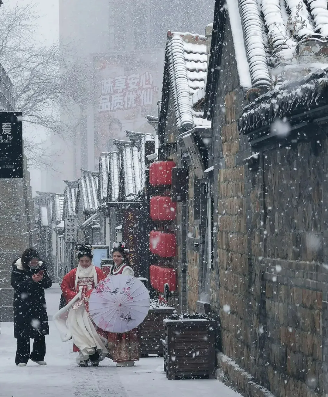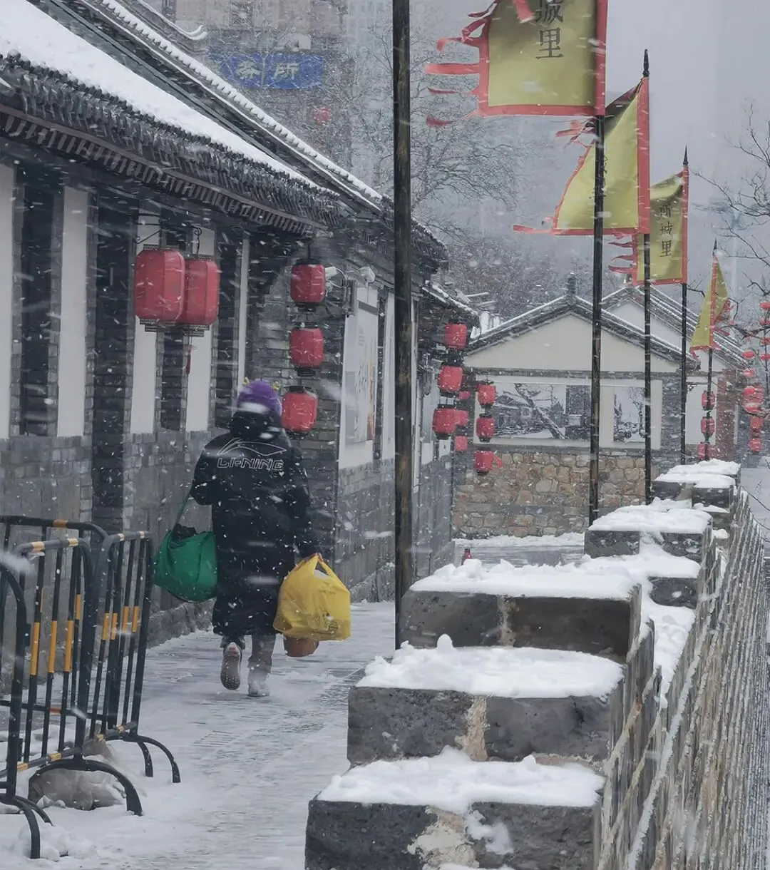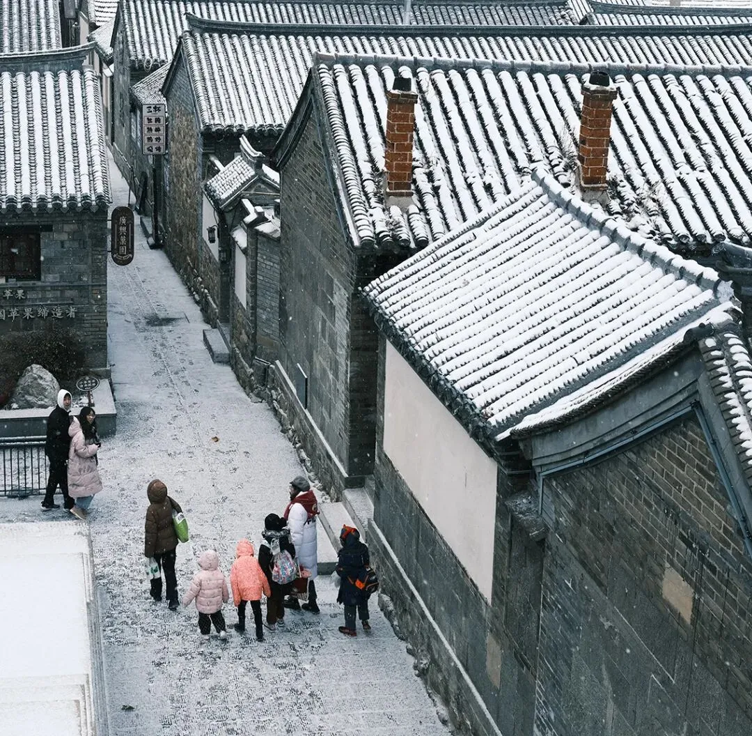 当落雪洒满街道,覆盖青瓦,古城便披上银装。鳞次栉比的屋檐翘脚,在素白中勾勒出浅淡的墨线,把古城润染成一幅水墨画卷。