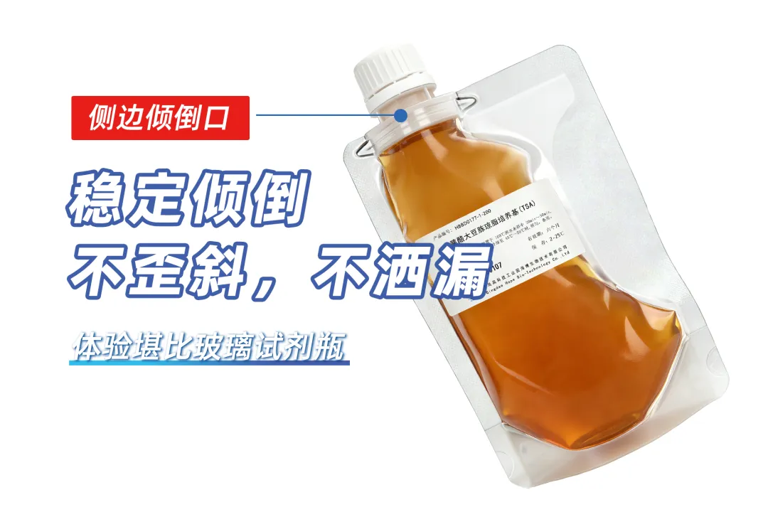 针对倾倒培养基时取用烫手的问题,新包装在袋子右侧专门增加防烫把手设计。倾倒时可直接手持取用,手指不会接触袋内液体培养基,防烫手的同时,握持感极好,无需额外佩戴手套或借助工具,既避免了烫伤风险,又简化了操作步骤,让后续倾倒更顺手。