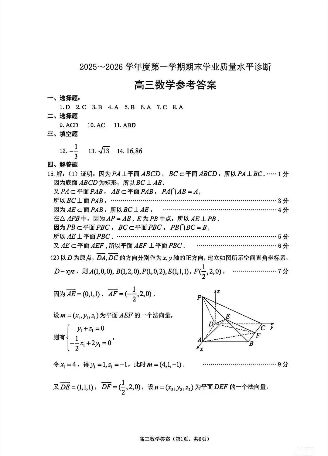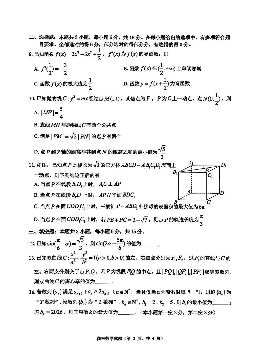 分享山东烟台市2025—2026学年度第一学期期末学业质量水平诊断高三数学试题及答案。