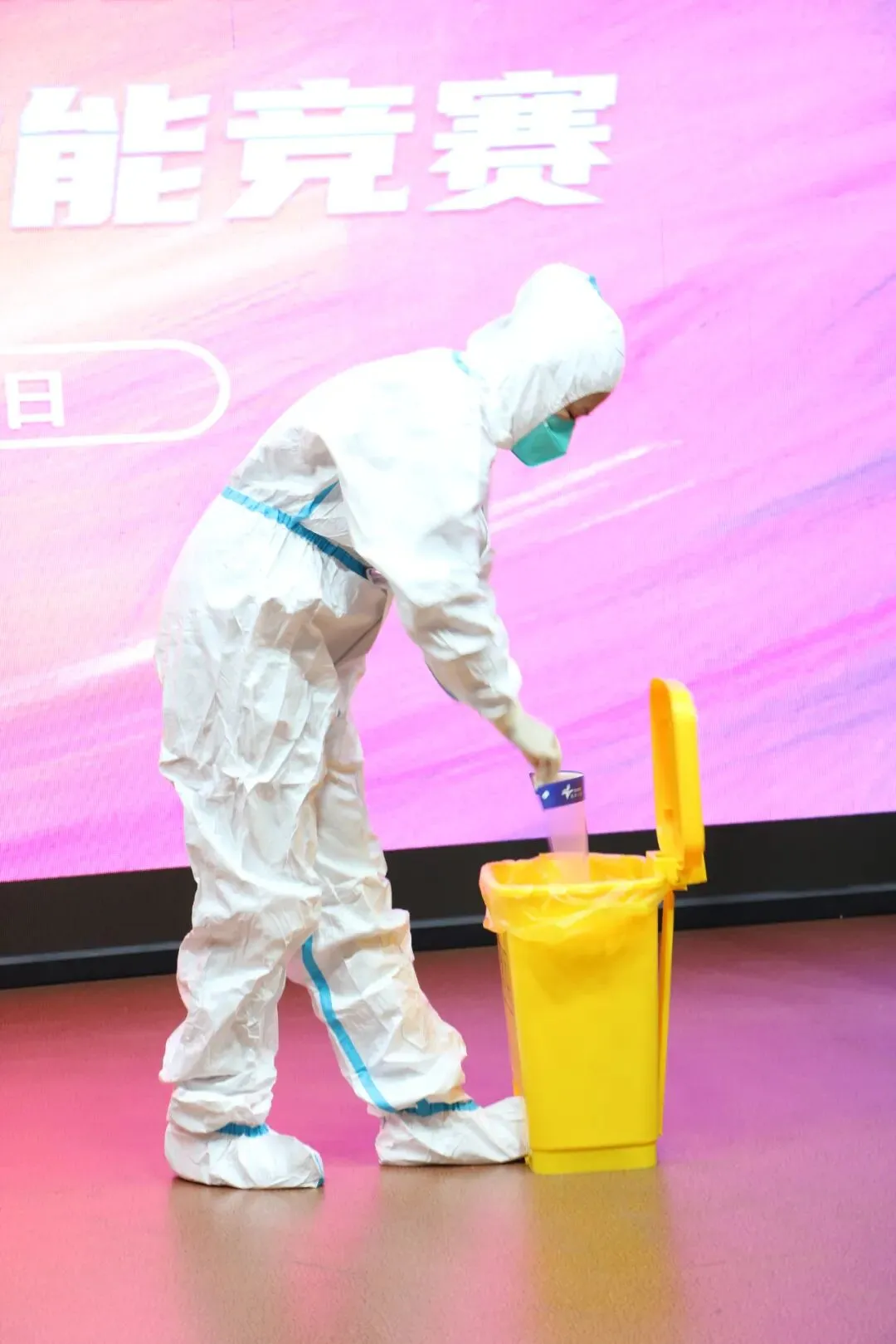 操作现场,参赛选手沉着应战,严格按照规范要求完成防护服、护目镜及医用防护口罩的穿脱流程,严格执行手卫生标准,正确进行医疗废物的分类与处置,展现了扎实的基本功和严谨的职业风范。评委从规范性、熟练度、细节处理及应急反应等方面严格评分,经过激烈角逐,最终评选出一等奖1名、二等奖2名、三等奖3名、优秀奖6名。