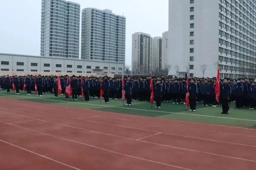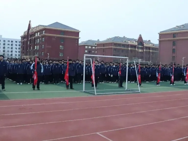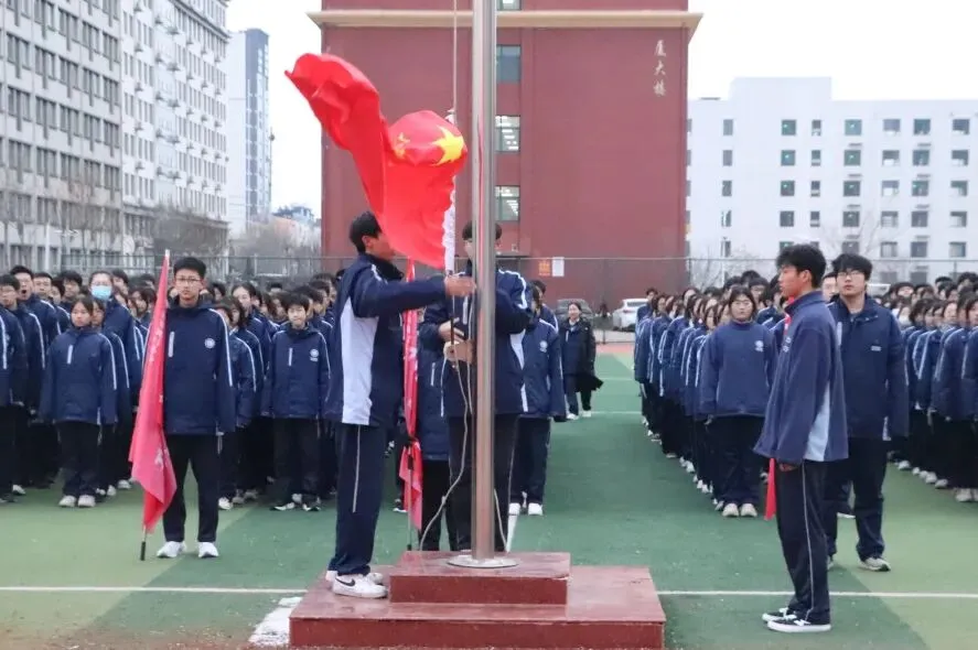 2026年1月26日清晨,青岛国开第二中学全体师生齐聚操场,隆重举行“勤耕不辍争朝夕,全力以赴赢期末”主题升旗仪式。晨曦微露,红旗招展,师生精神饱满,共同迎接新一周的学习与挑战。本次升旗仪式由高一8班组织开展,校国旗护卫队承担升旗任务。